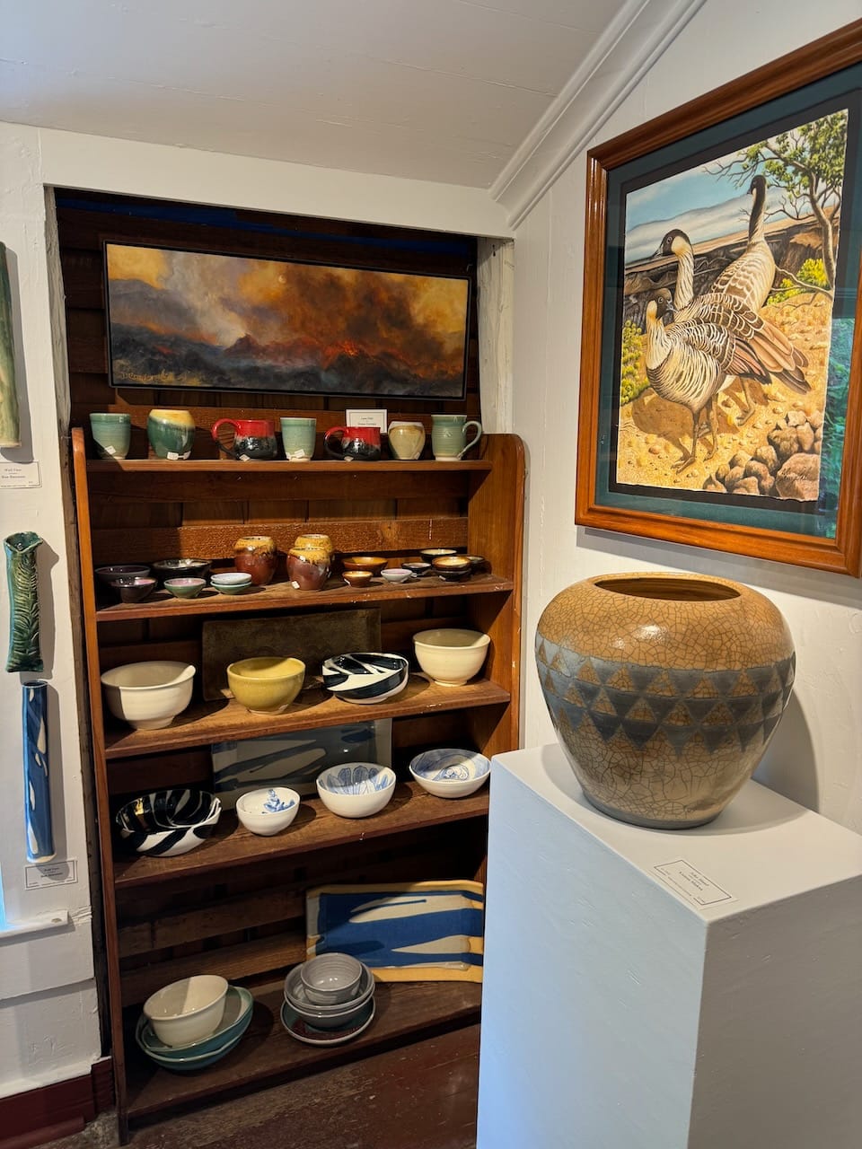 Hoping the rain would subside, we visited the Volcano Art Center. Although our wish wasn’t granted, we discovered stunning artwork by local artists, which turned out to be an unexpected delight.