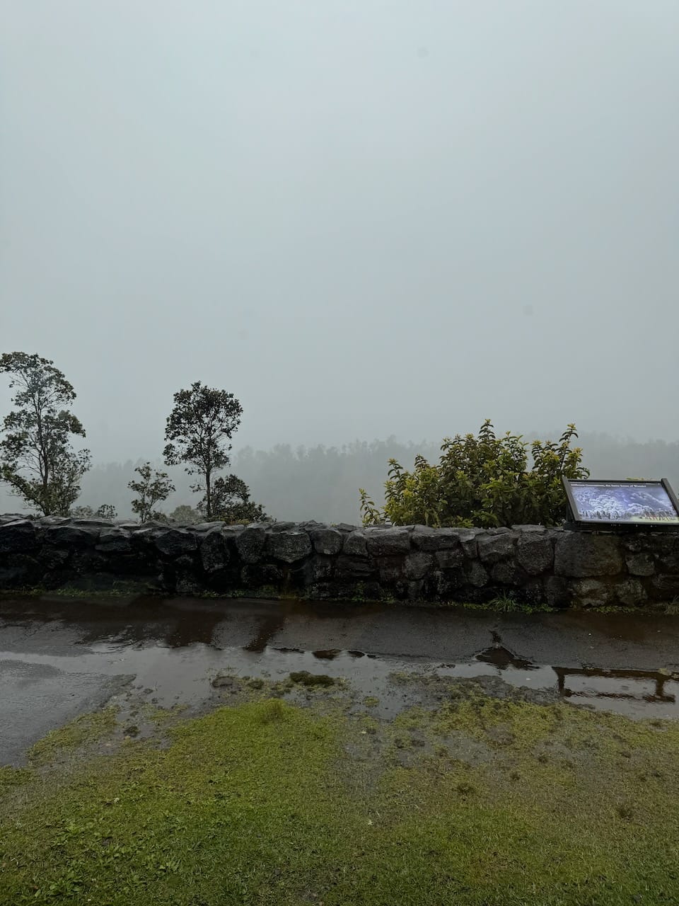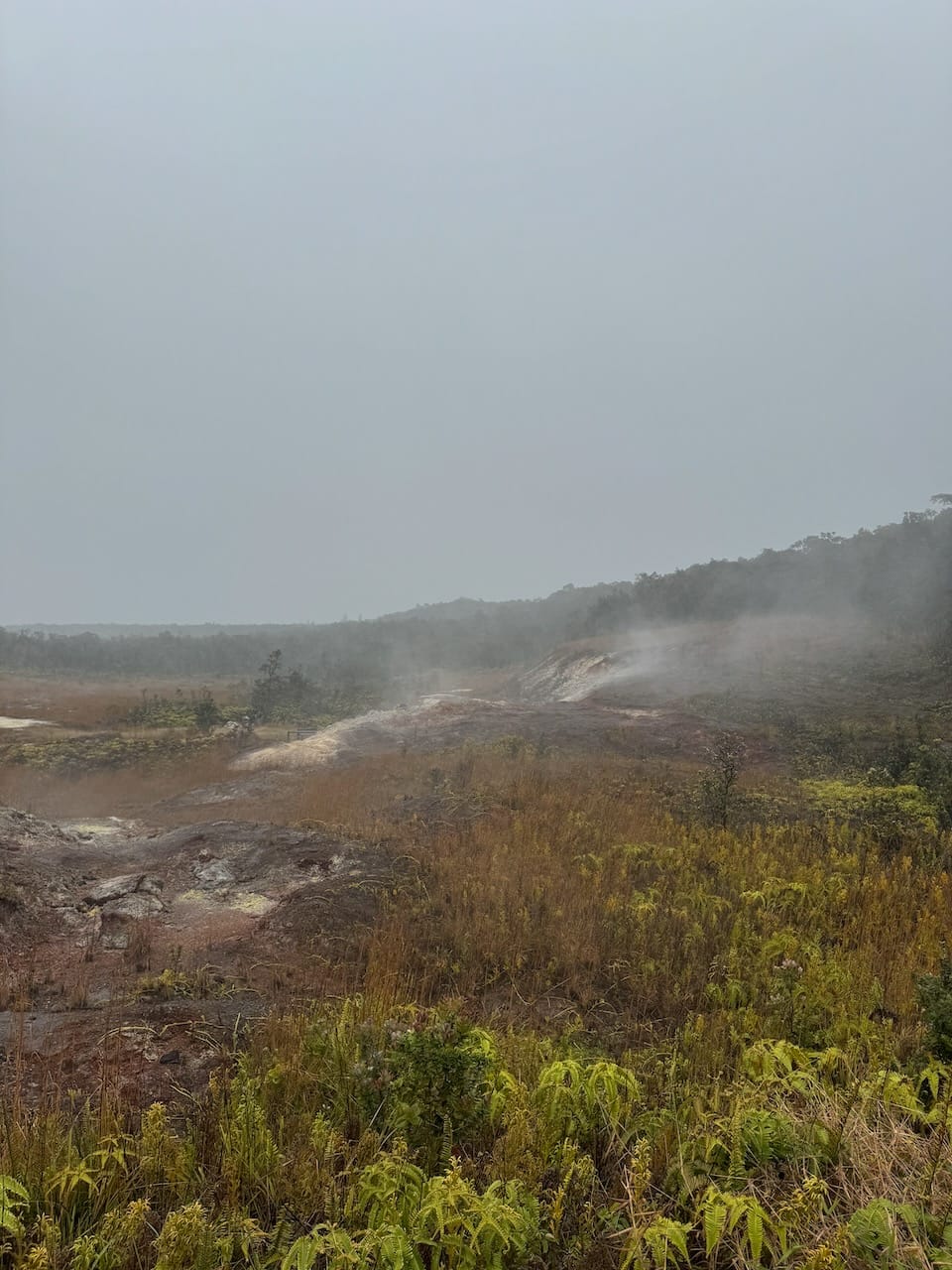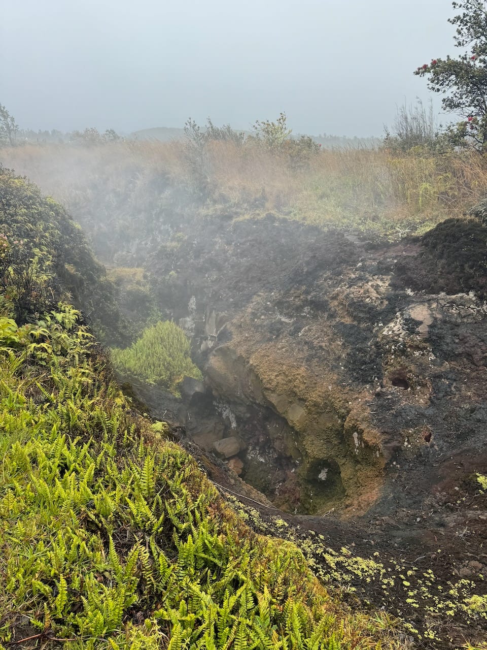 National Parks have been the main inspiration behind our recent family trips, so we couldn't pass up visiting the Hawaiian Volcanoes National Park. While I still don't understand why Mauna Kea isn't designated as a National Park, while this place is - there must be some criteria for these designations. Unfortunately, our timing was less than ideal due to heavy rain. The sky was clear when we arrived at the park entrance, but much like our experience at Mauna Kea, we ascended into the clouds. By the time we reached the visitor center, it was completely enveloped in mist.