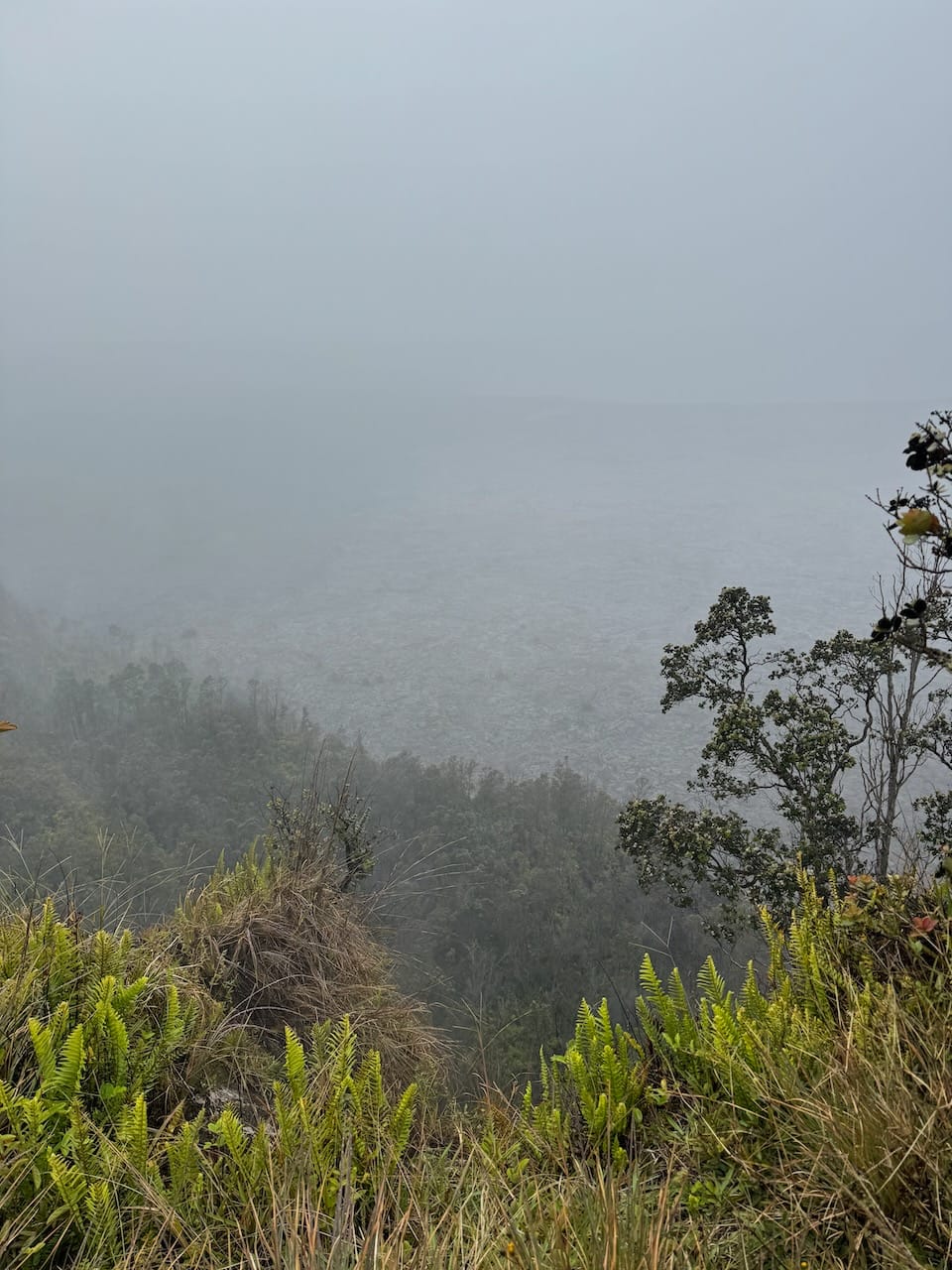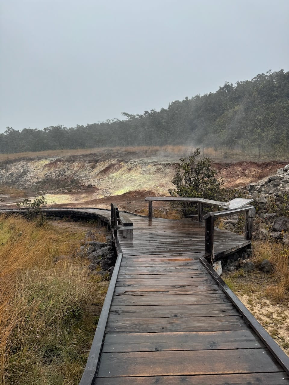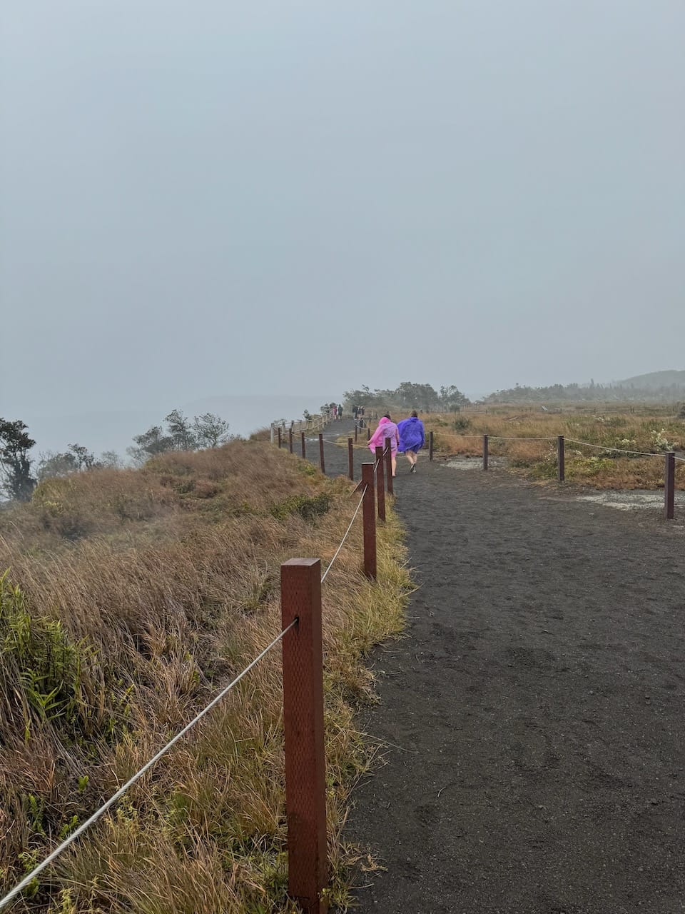 National Parks have been the main inspiration behind our recent family trips, so we couldn't pass up visiting the Hawaiian Volcanoes National Park. While I still don't understand why Mauna Kea isn't designated as a National Park, while this place is - there must be some criteria for these designations. Unfortunately, our timing was less than ideal due to heavy rain. The sky was clear when we arrived at the park entrance, but much like our experience at Mauna Kea, we ascended into the clouds. By the time we reached the visitor center, it was completely enveloped in mist.