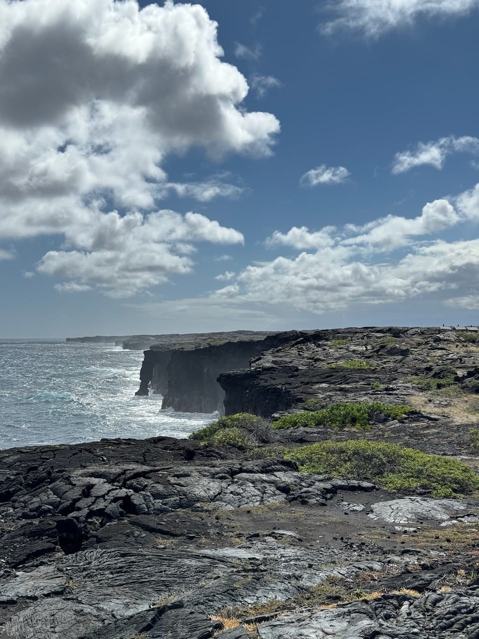 Our next destination was the Holei Sea Arch, located over 20 miles from the visitor center down by the seashore. As we descended, we were greeted by the sun and blue sky once again. Curious about what the 'Arch' would look like, we finally spotted it at the edge of a sea cliff. While the arch itself wasn't as striking as the Delicate Arch in Arches National Park, the scenery along the way was breathtaking and far exceeded my expectations.