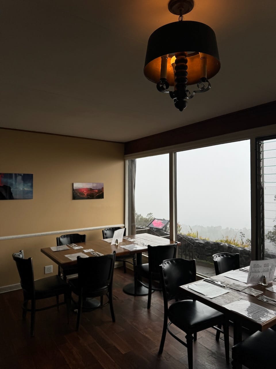 After a long day, we dined at The Rim at Volcano House. Despite the rain obscuring the stunning crater view from our window seat, the restaurant was excellent, and it provided a much-needed opportunity to recharge before heading back home.