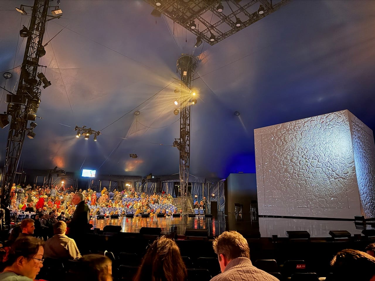 The big top for ECHO was a bit smaller than some other Cirque tents I had seen. The largest one I remember was KOOZA in Korea (maybe because of the big Wheel of Death). Even so, the setup was intimate, and our seats were close to the stage, which made everything feel more intense and immediate.