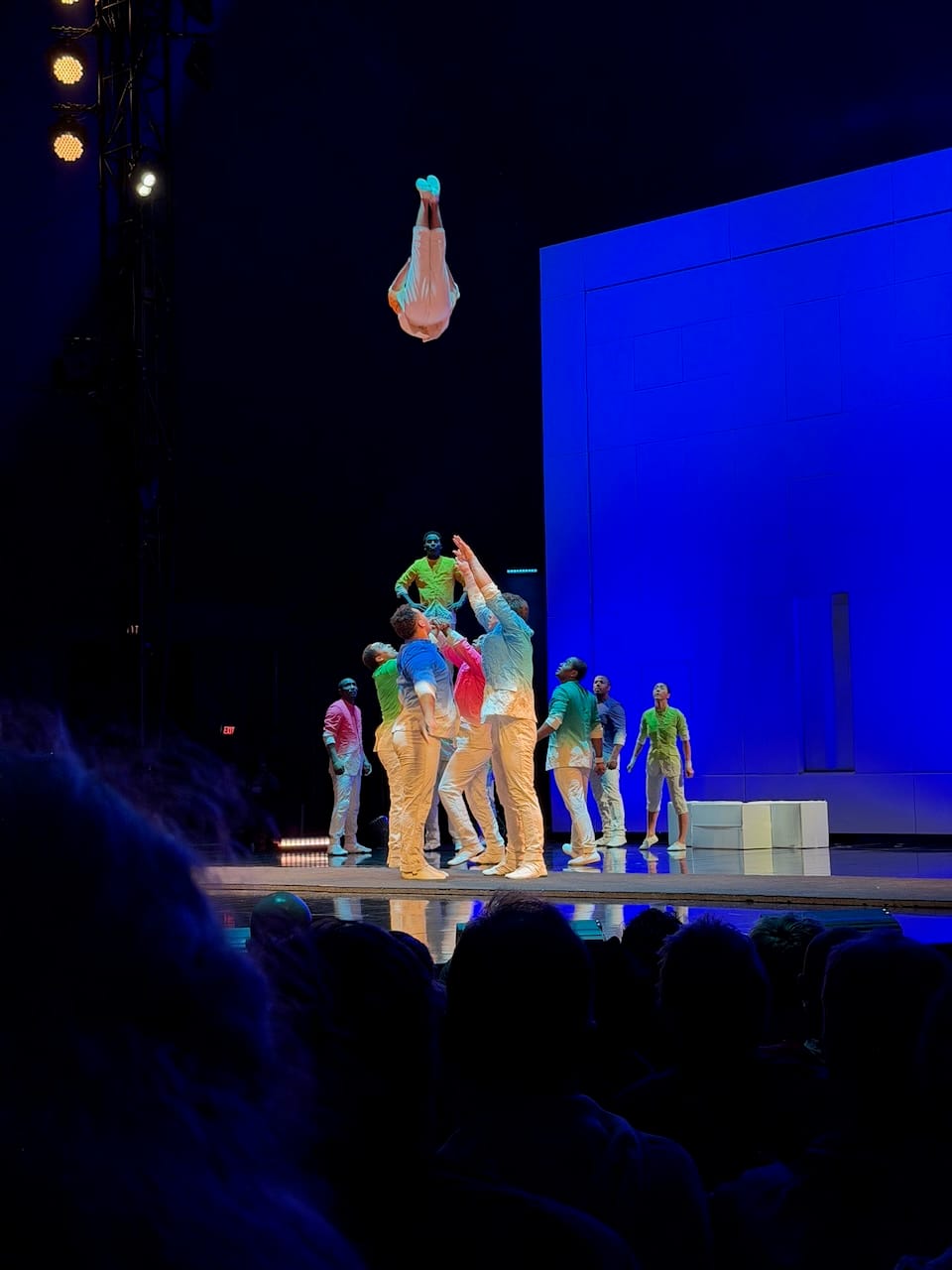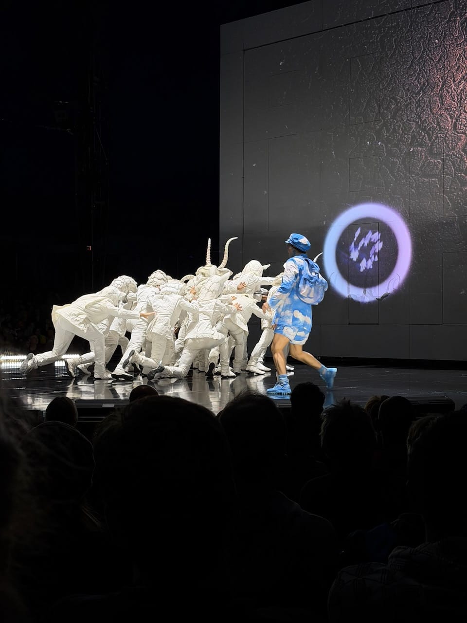 Another thing I appreciated: every Cirque show has a storyline, usually involving a protagonist guided by strange beings through an abstract journey. Often, the main character and the clowns are more prop(symbolic) than active. In ECHO, the protagonist and the clowns actually performed. They were not just narrative devices. They were central to the physical storytelling, and that made the whole experience feel more alive.