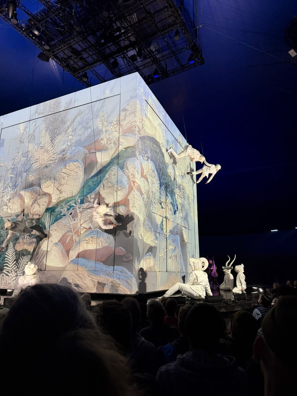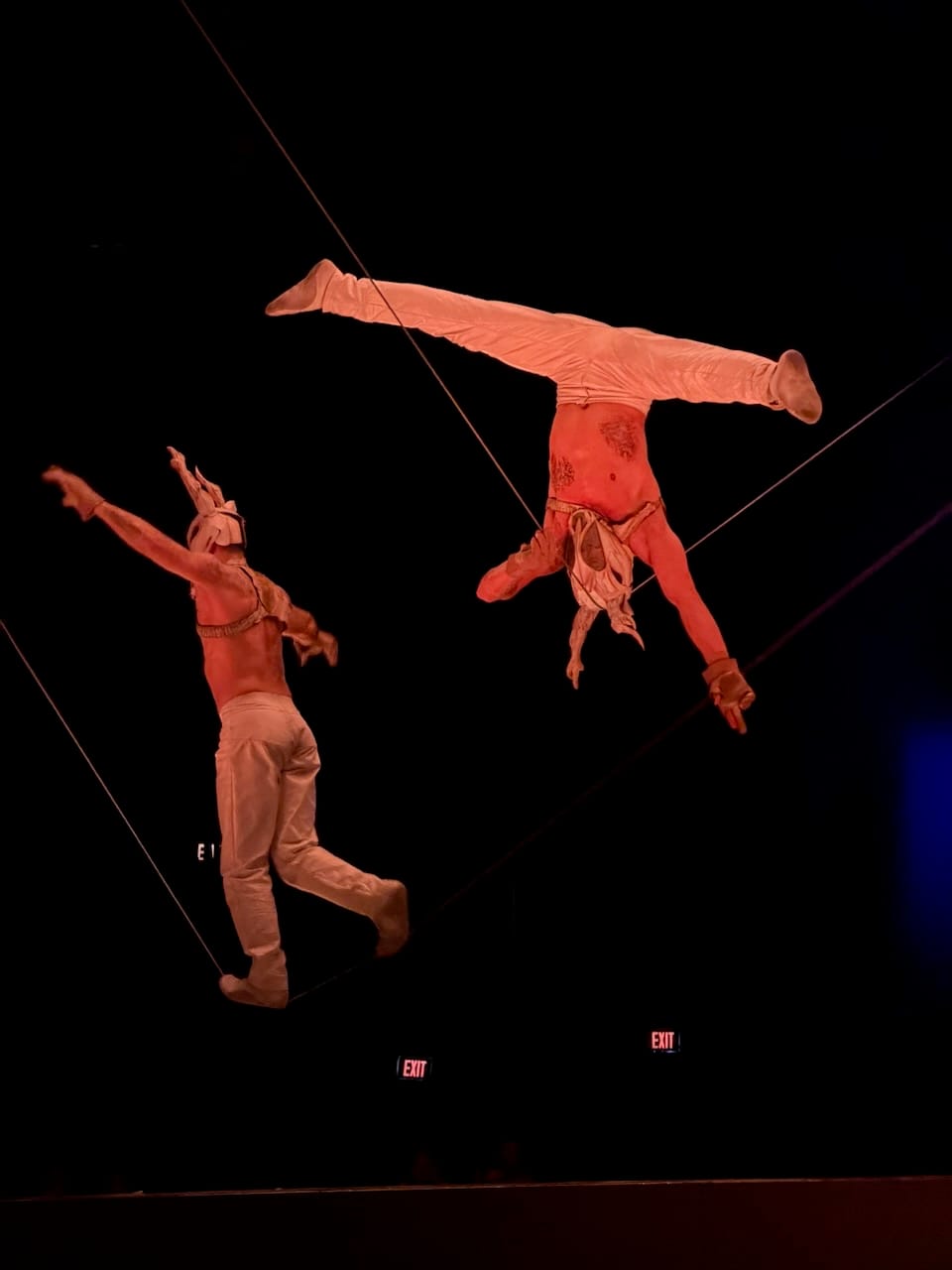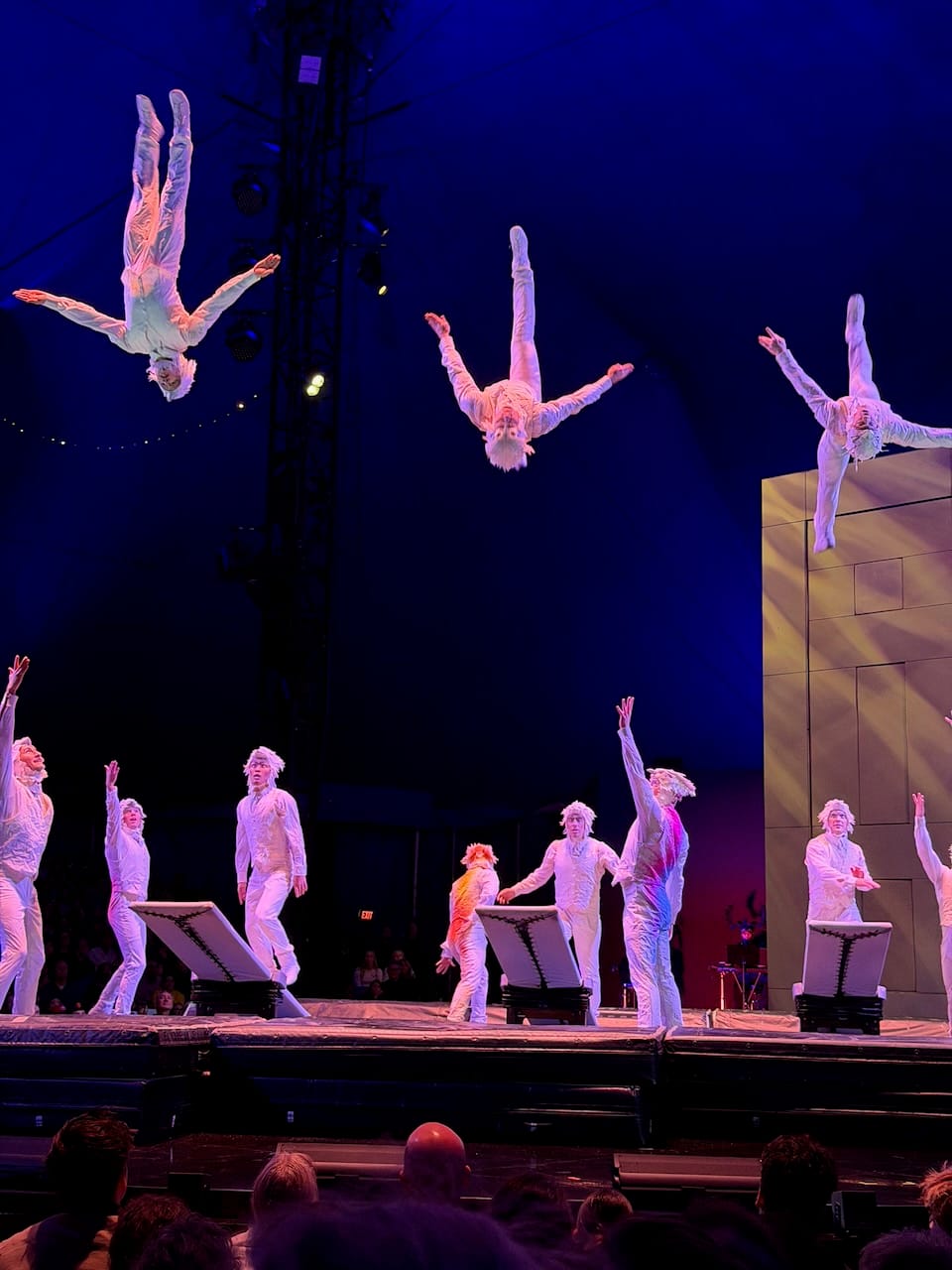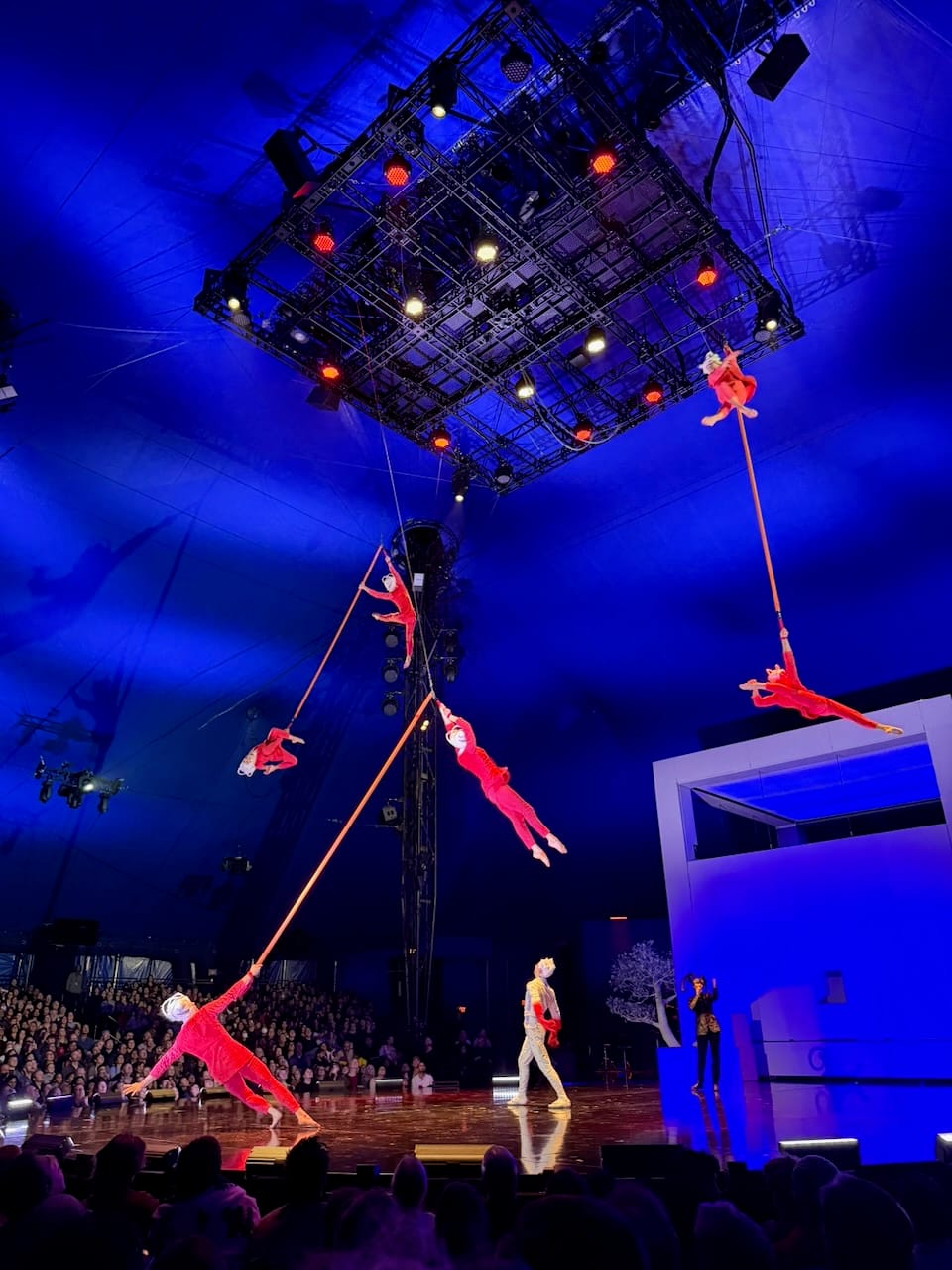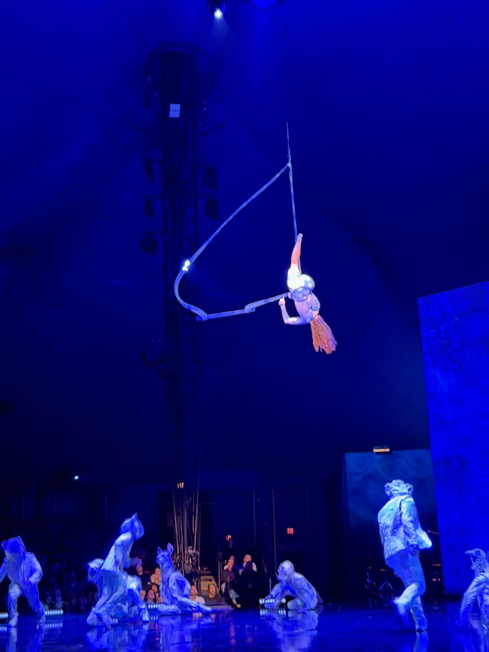 The show itself was excellent, as expected from Cirque du Soleil, but what stood out to me was how physical it was. Many Cirque shows lean heavily on elaborate stage mechanics and moving sets (though definitely it is human skills that make it great). ECHO felt more like a traditional circus in the best way. The focus was almost entirely on human bodies: hanging, swinging, balancing, climbing ladders, jumping, flying. There was a massive red marionette that served as the visual symbol of the show, but most of the real magic came from raw human movement and control.