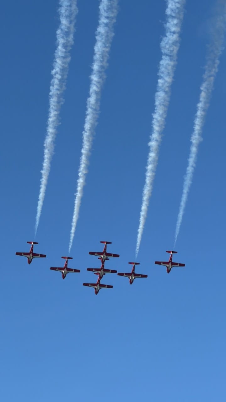 And then came the Snowbirds, the official aerobatic team of the Royal Canadian Air Force — a literal international rescue. They flew the CT-114, a modest training jet without the roar or speed of the Blue Angels’ F-18s, yet their tight and beautifully aligned formations were elegant and mesmerizing. It wasn’t power — it was harmony.