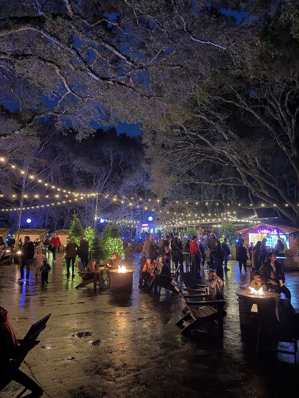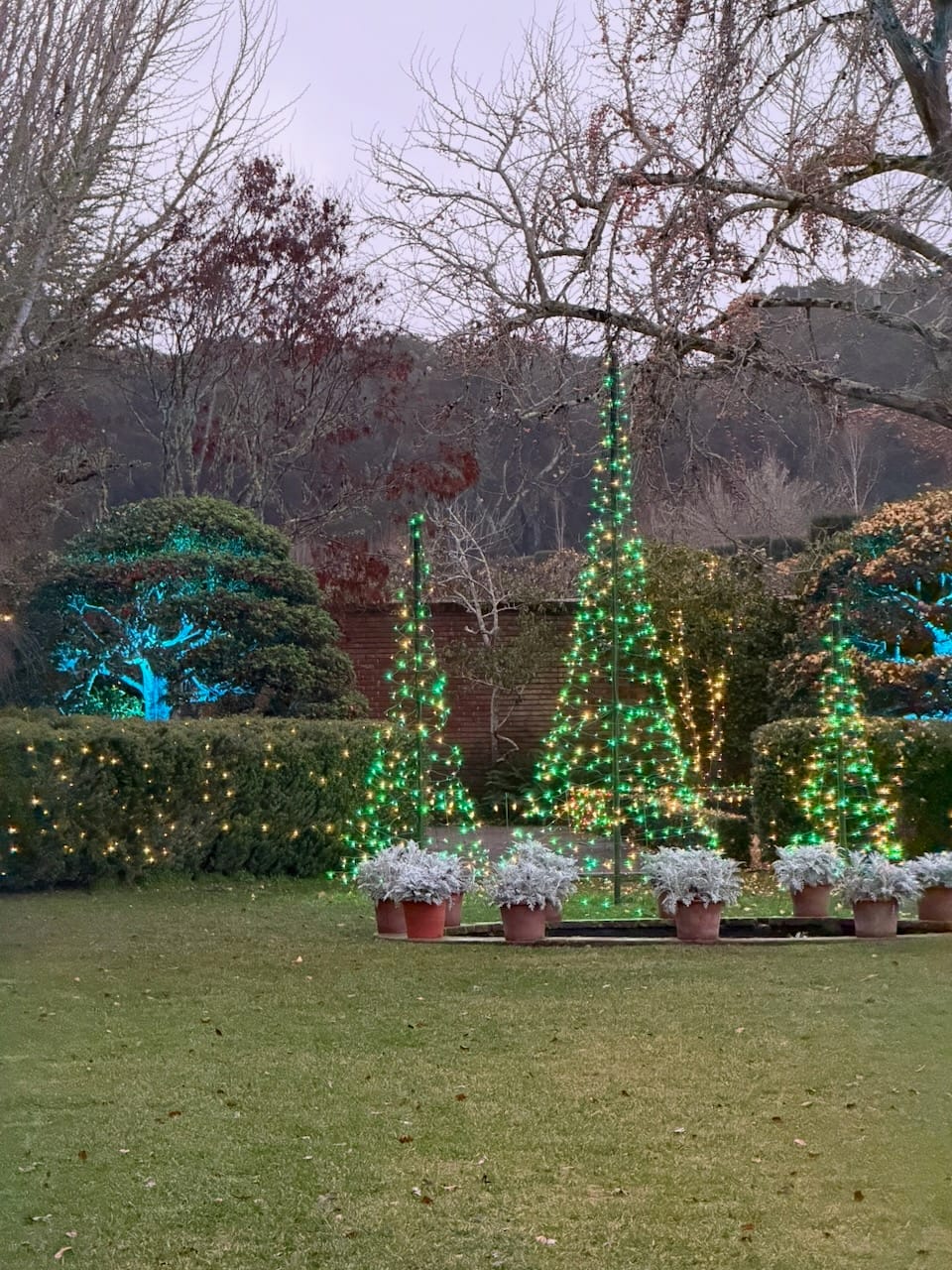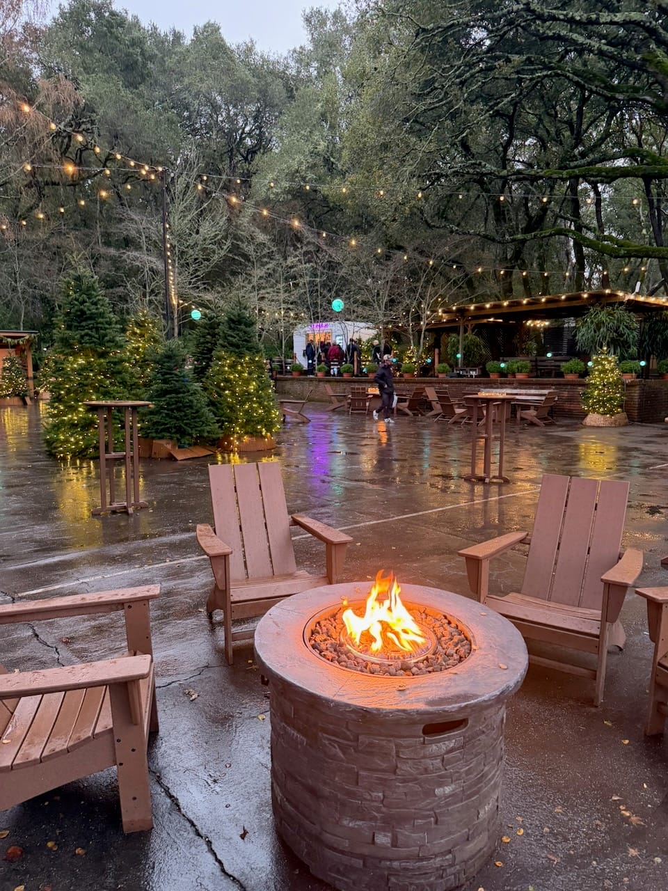 The evening we went was rainy, like much of this winter, but luckily the rain was light when we arrived. One thing surprised me: the trolls were gone. They must have been a seasonal installation. I was a little sad to see them disappear, but I also liked the idea. It means Filoli is not trying to freeze itself into one experience—they let the place stay alive, change, and give visitors a reason to return.