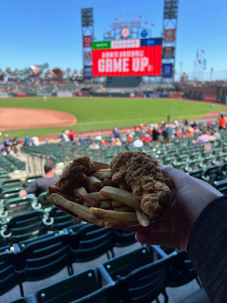 The Park seems to have great food selections. I said 'seems' because I haven't tried much because I always just grab some Chicken Tenders with Fries from Gilroy Garlic Fries. I might have to get outfield seats if I really want to try some other cuisine, such as Crazy Crab Sandwich.