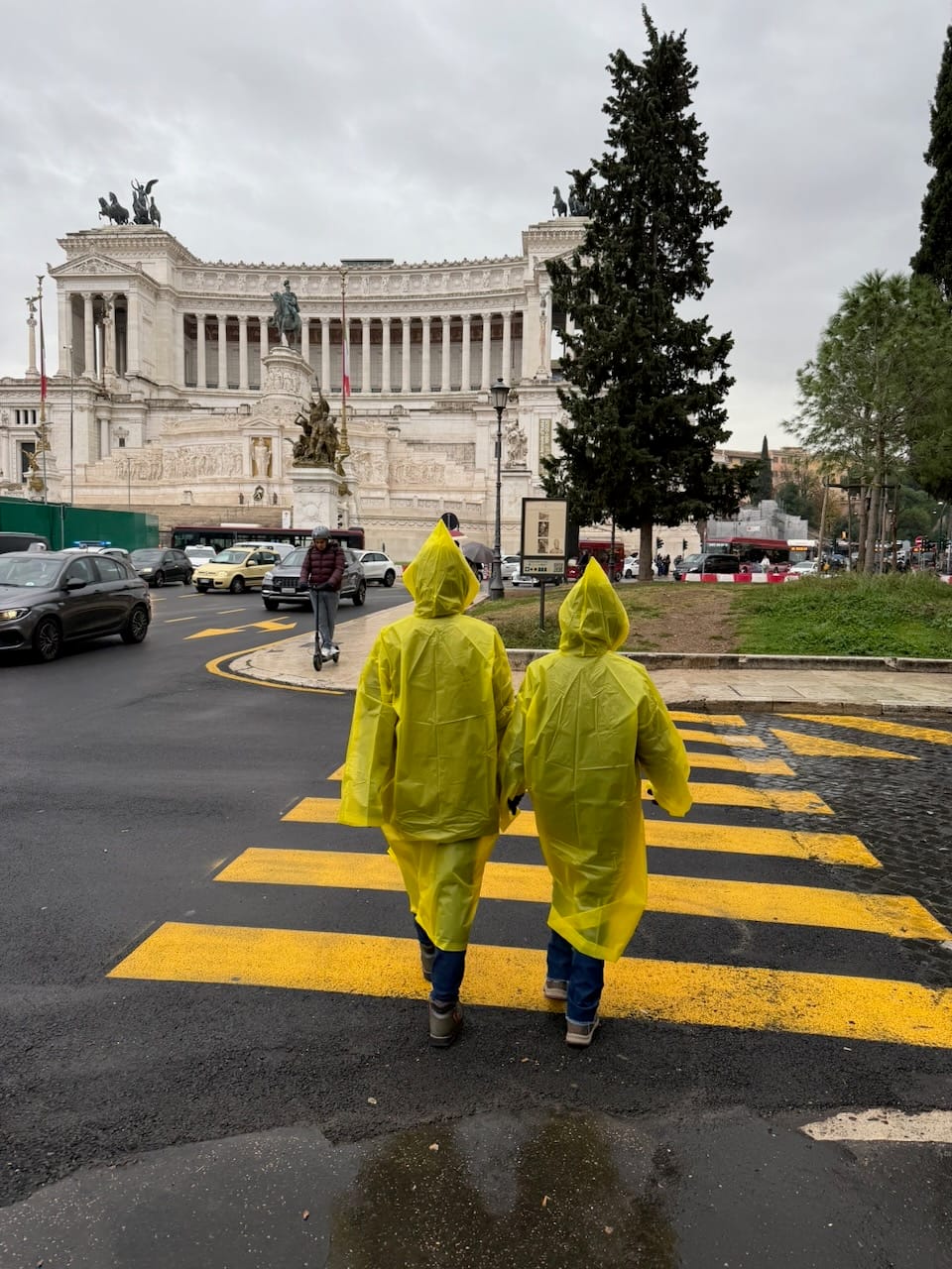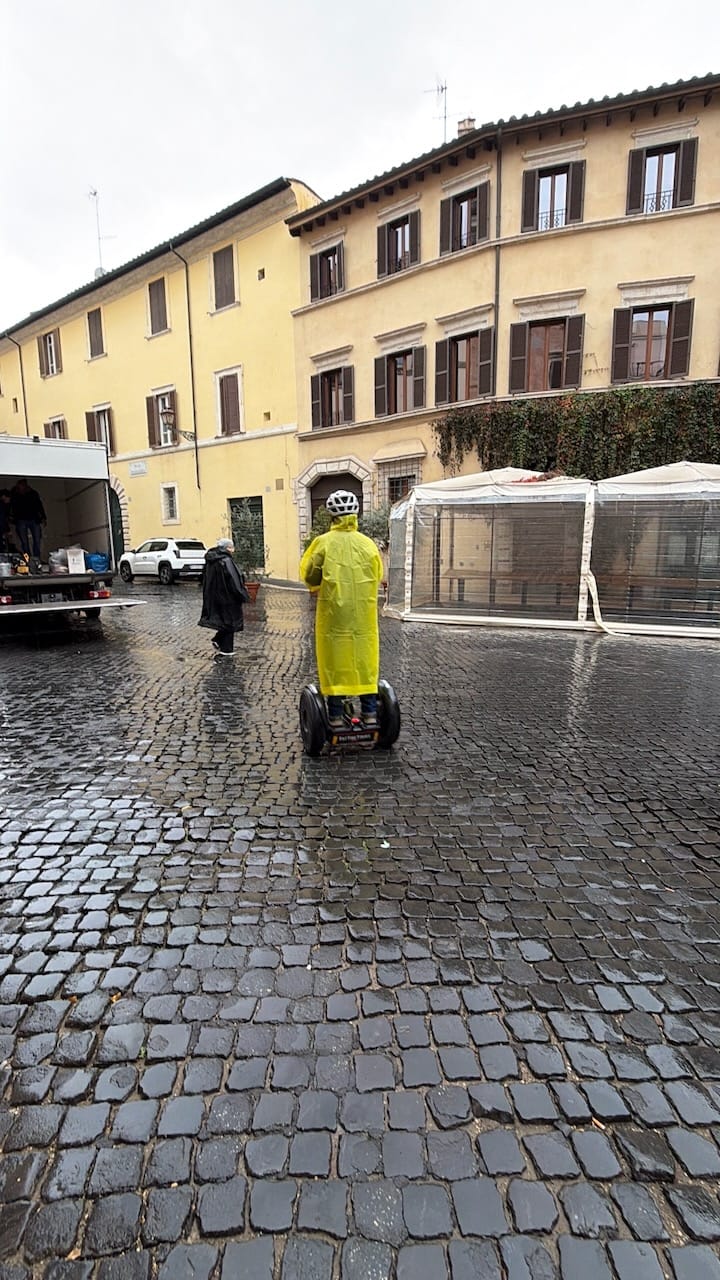 After the long walk on Day 1, Day 2 felt much more relaxed, thanks to two guided tours we had booked in advance. The morning began with a Segway tour. We had done one just this past summer in Washington, D.C. (June), and while we were a little worried about the bad weather, the Segway turned out to be remarkably stable and reliable — even on wet Roman streets.