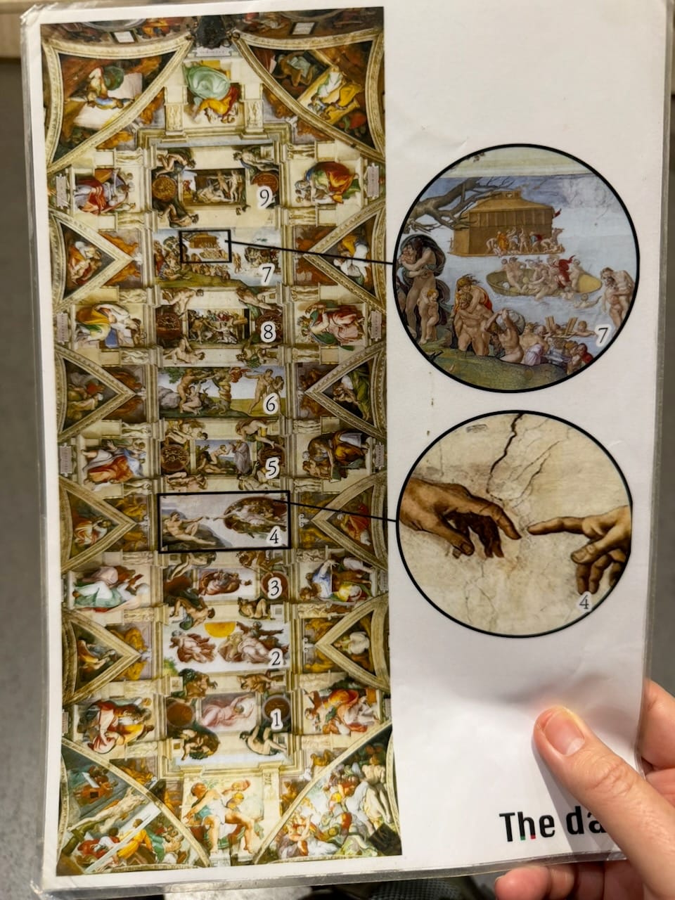 And then came the Sistine Chapel, the place of The Creation of Adam and The Last Judgment. It was, of course, magnificent, but not quite as overwhelming as I had imagined beforehand. That wasn’t because photography was forbidden and I couldn’t collect enough “inputs” to reinforce the memory (our brains are wonderfully self-associative that way), but partly because of the light and the gloomy weather outside. I found myself wishing the space had been brighter, the colors more radiant. Still, the true greatness of the Sistine Chapel doesn’t come from the immediate visual impact alone. It comes from a far simpler, almost unbelievable fact: that ceiling and wall were painted by one person. And the story of Biagio da Cesena, who was condemned by Michelangelo to suffer eternally in the painted Inferno, felt like a strangely small reward to the maestro.
