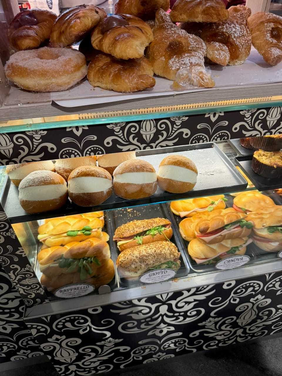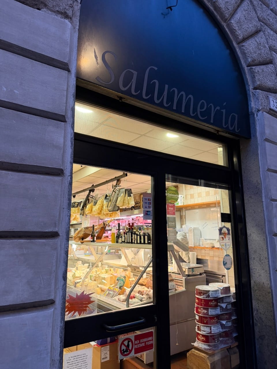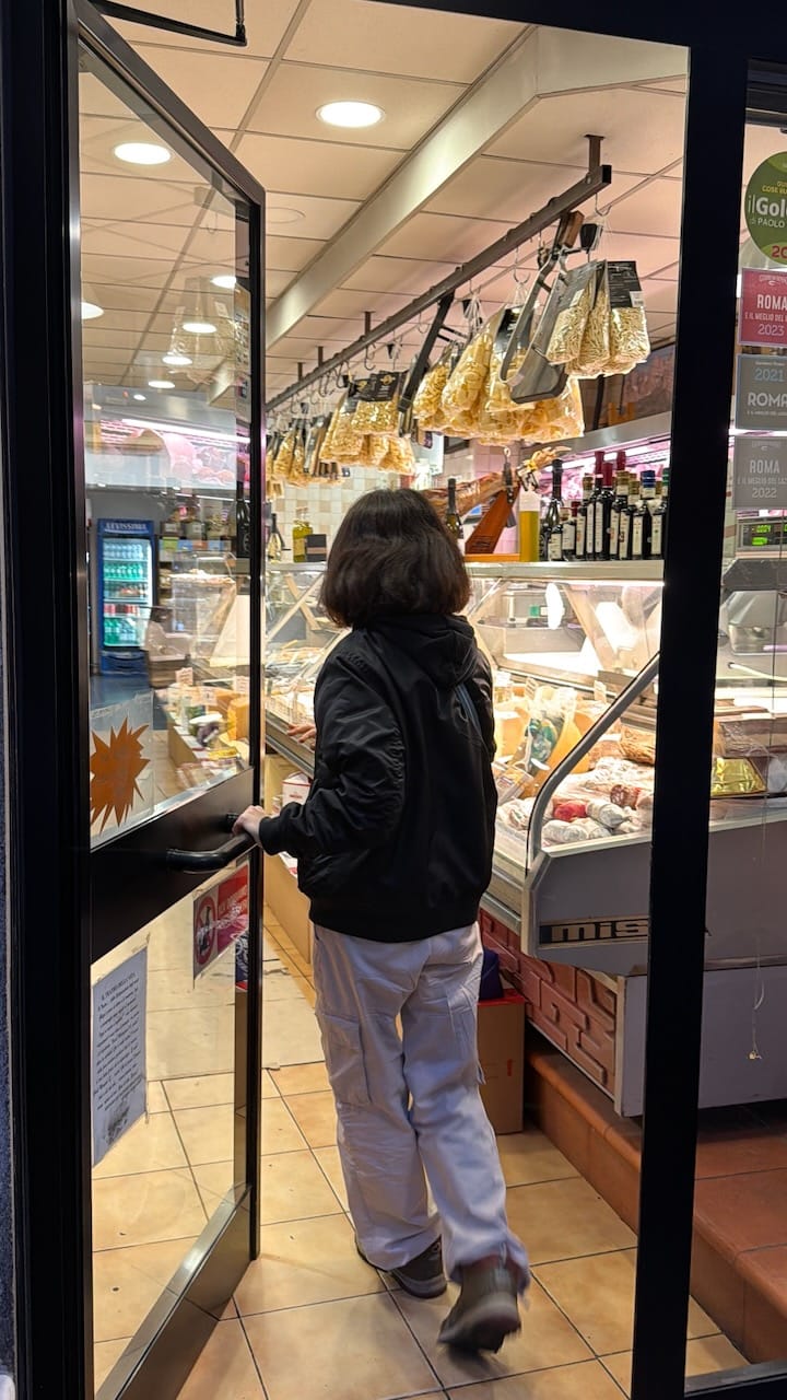 After refueling with gelato, we made our way to Ghezzi Alessandro (via a taxi), a sandwich shop that was firmly on my daughter’s must-visit list, thanks to Seventeen, who had eaten there and declared it their favorite. This was our second attempt—on Day 1 we had found it closed. This time it was open… but we learned that sandwiches aren’t served in the evening. Timing, once again, was not on our side there.