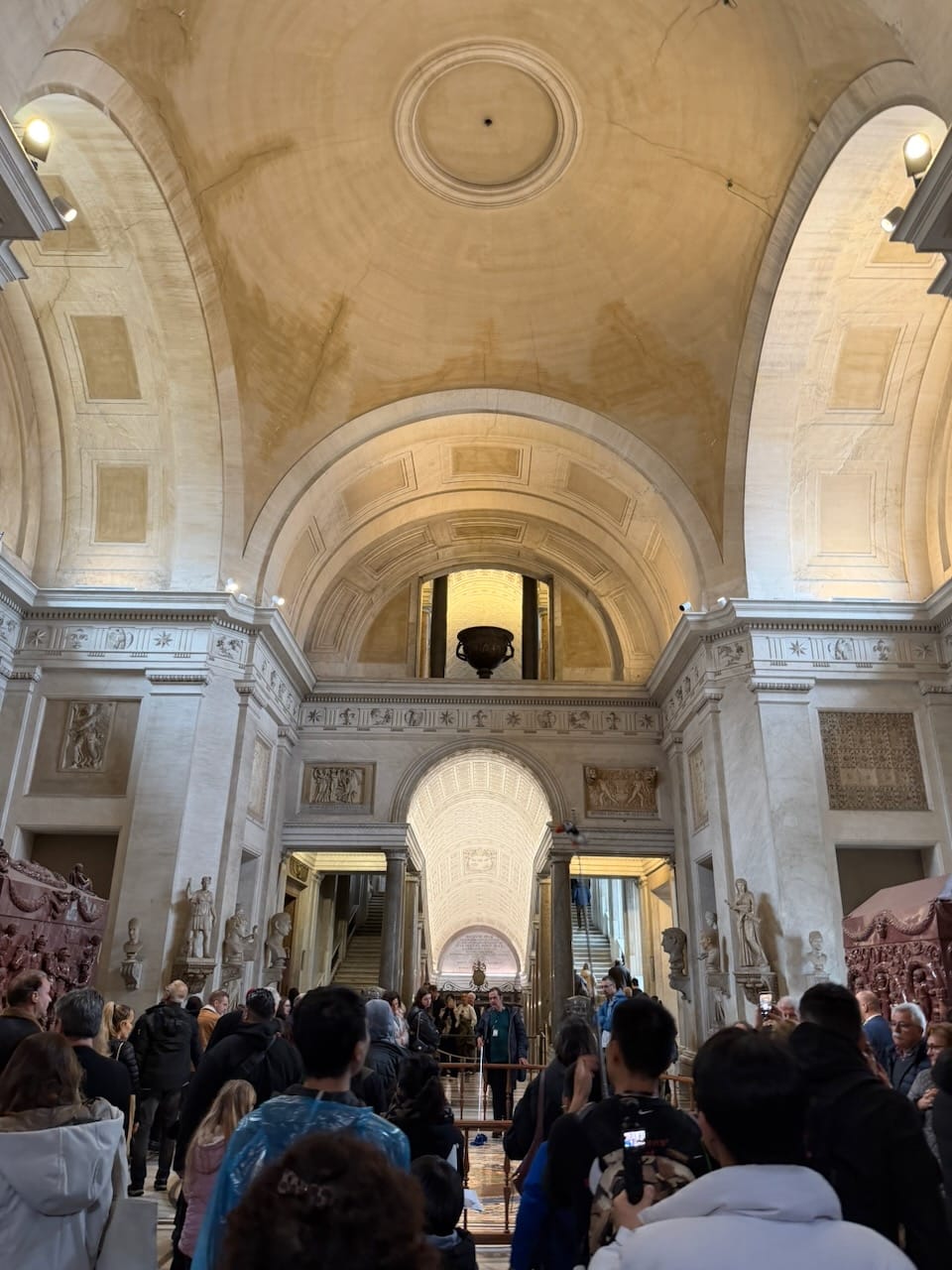 After passing countless frescoes and even a large internal parking lot that reminded me of a scene from the movie Conclave, we finally approached the highlights of the Vatican Museums.