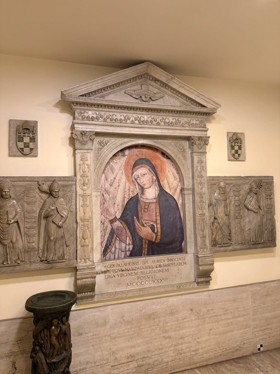 Because of the rain, our orientation session took place right at the entrance. There, Mingky gave us a detailed introduction to the highlights of the Sistine Chapel (The Creation of Adam and The Last Judgment) where photography is strictly forbidden inside. We could have this context beforehand. It helped streamline the rest of the visit and kept the tour impressively hassle-free. From there, we moved into the Pinacoteca (Picture Gallery). We saw Michelangelo’s three Pietà sculptures (replicas), along with a remarkable collection of paintings: from Giotto’s Stefaneschi Triptych to Raphael’s Transfiguration.
