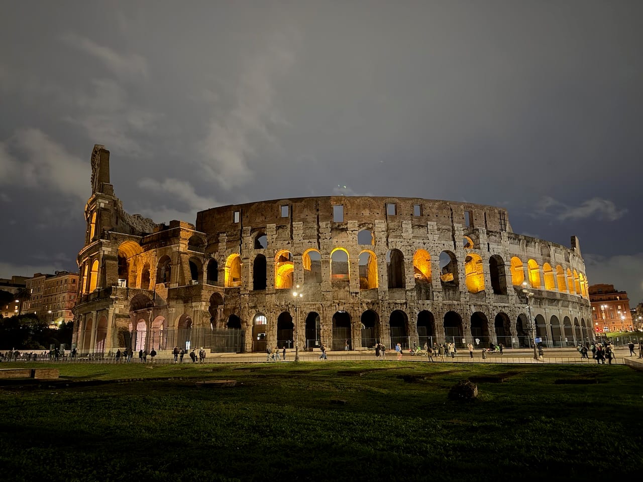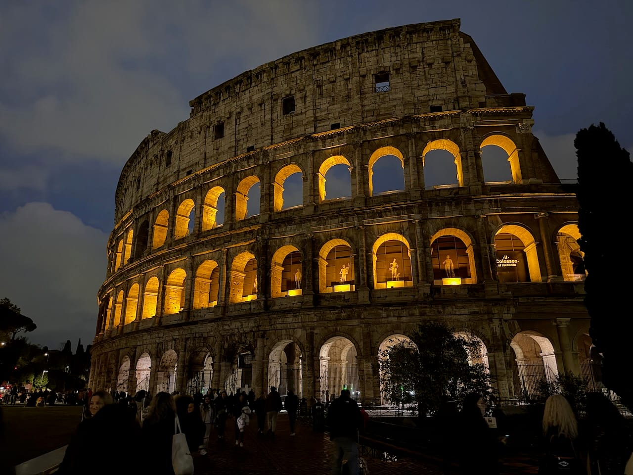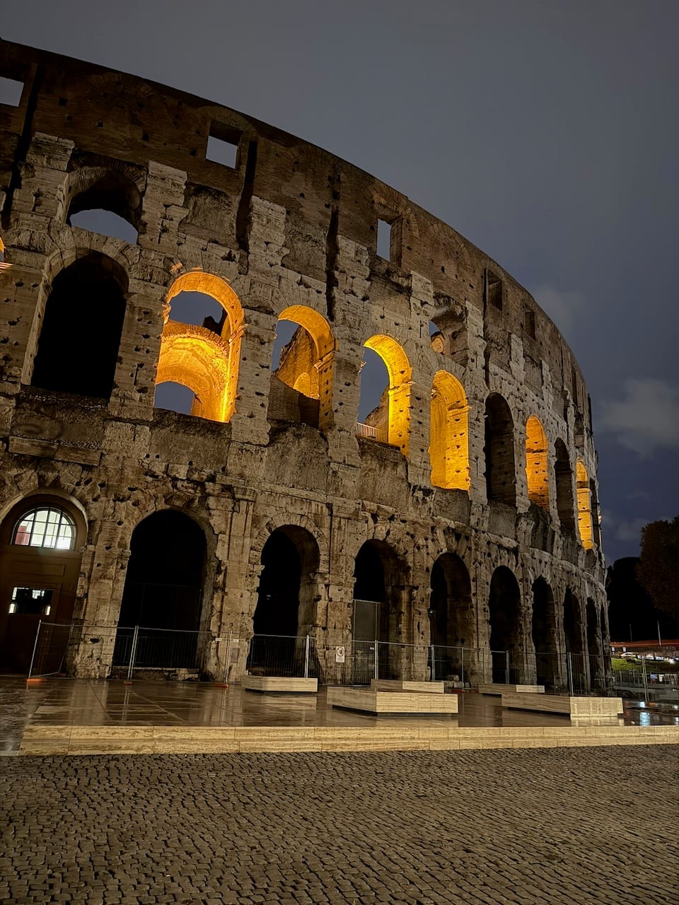 We returned to the hotel (via another taxi) area and ended the night at the Colosseum, this time under the dark sky. It was beautiful — quietly, overwhelmingly beautiful. After the long, rainy day, it felt like luck finally paid us back, giving us this moment of stillness and light.