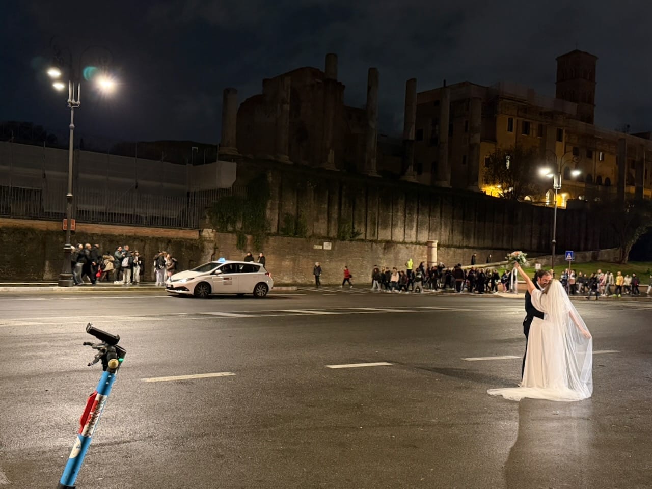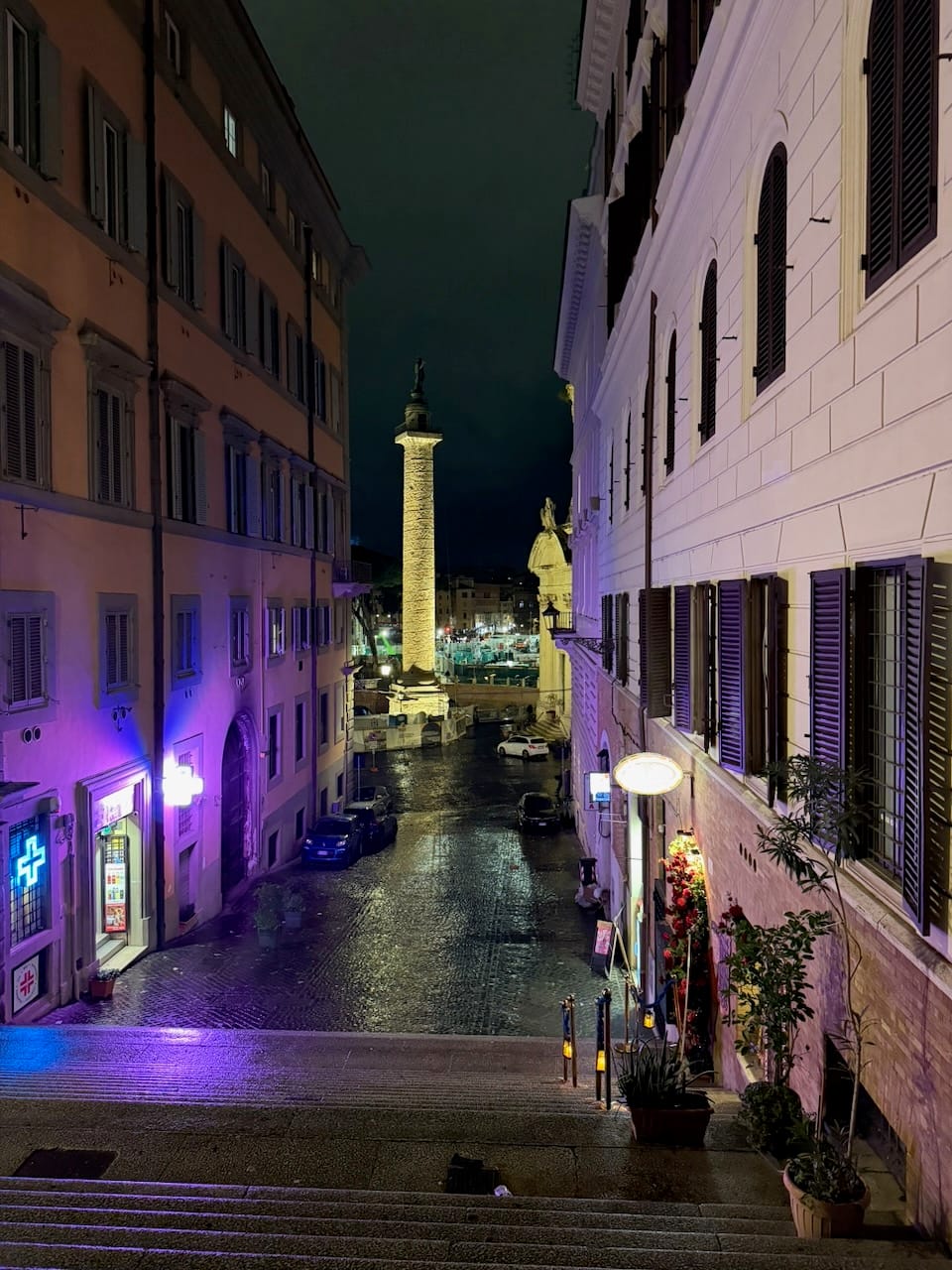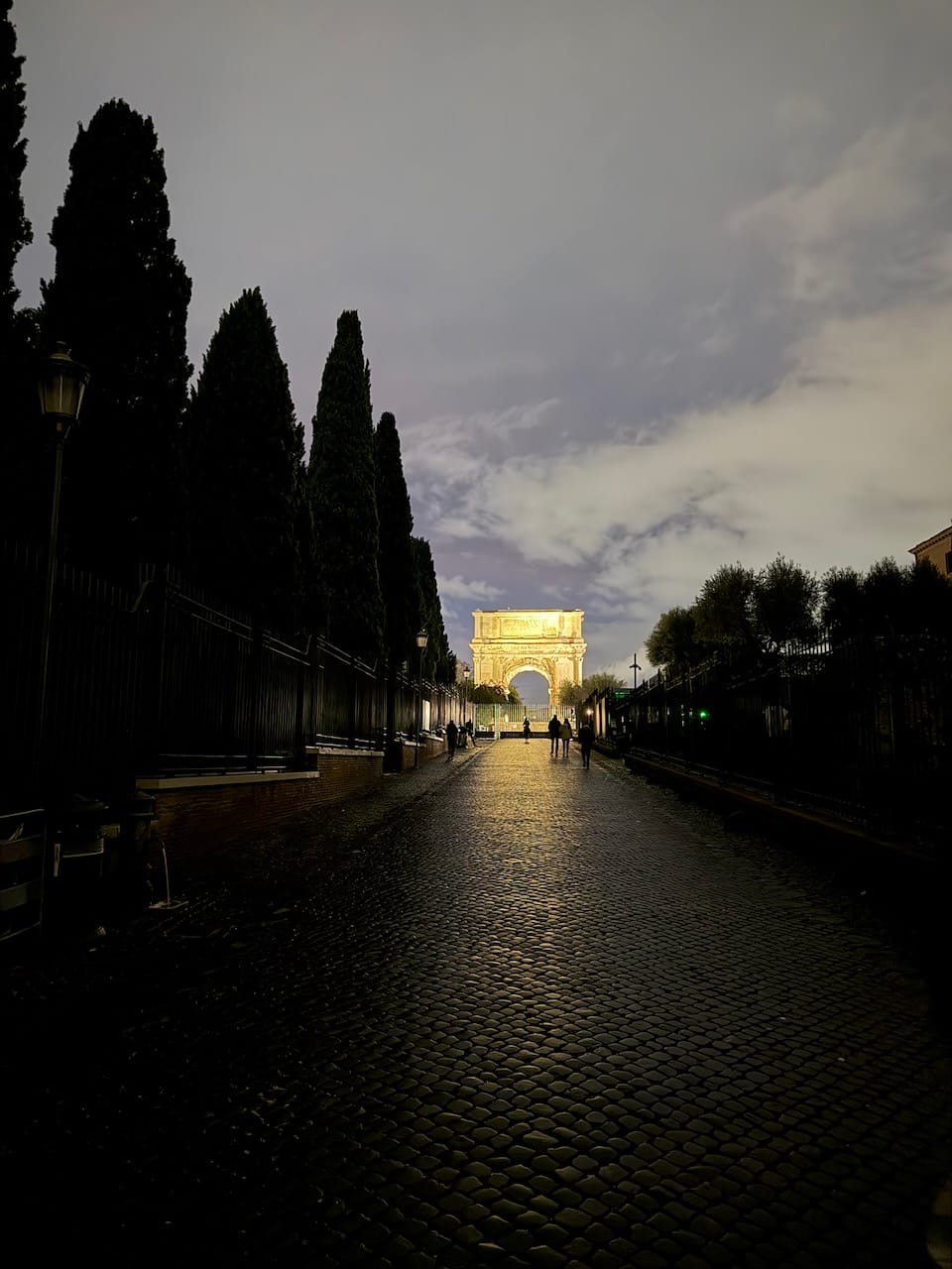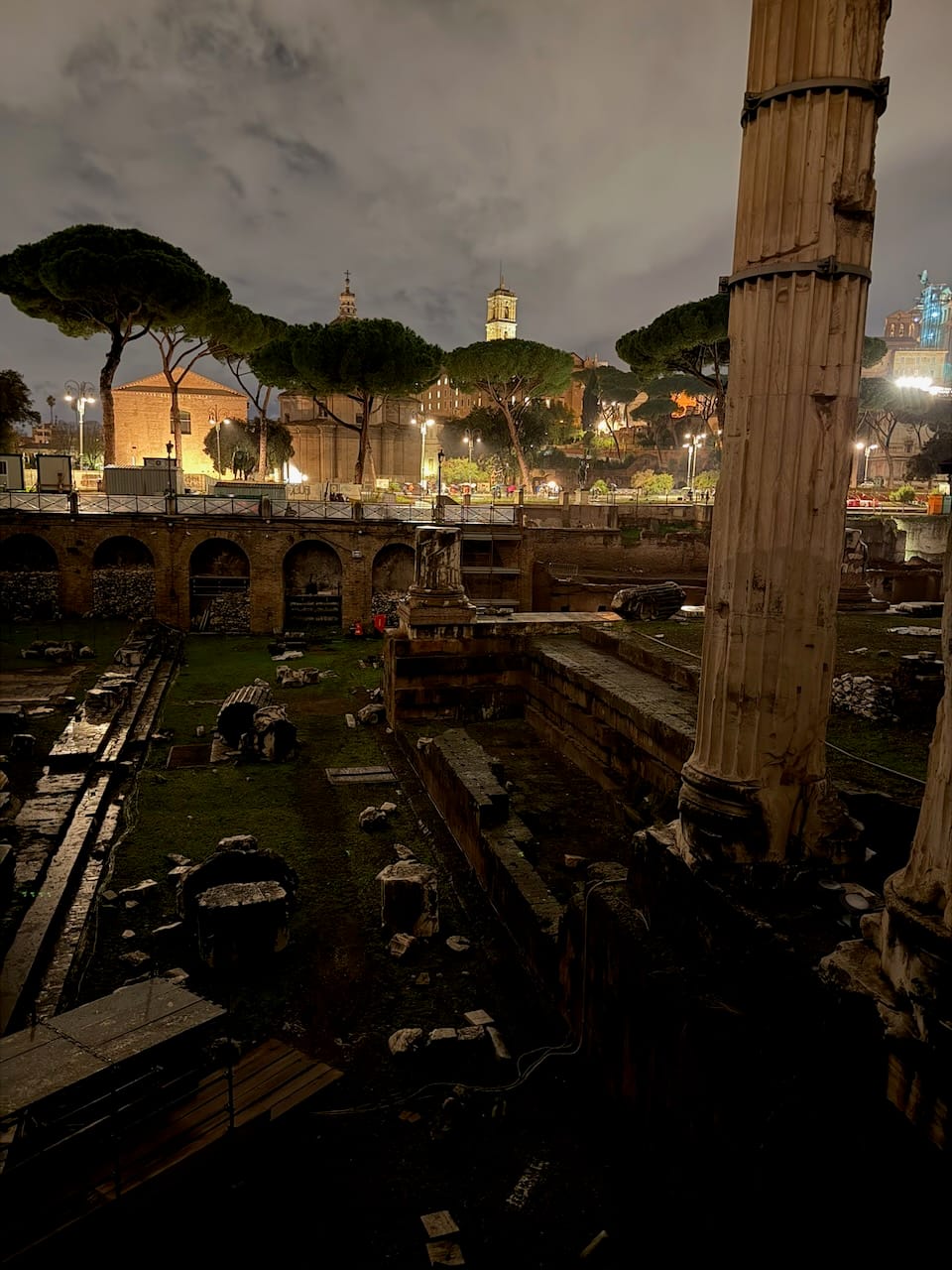 We returned to the hotel (via another taxi) area and ended the night at the Colosseum, this time under the dark sky. It was beautiful — quietly, overwhelmingly beautiful. After the long, rainy day, it felt like luck finally paid us back, giving us this moment of stillness and light.