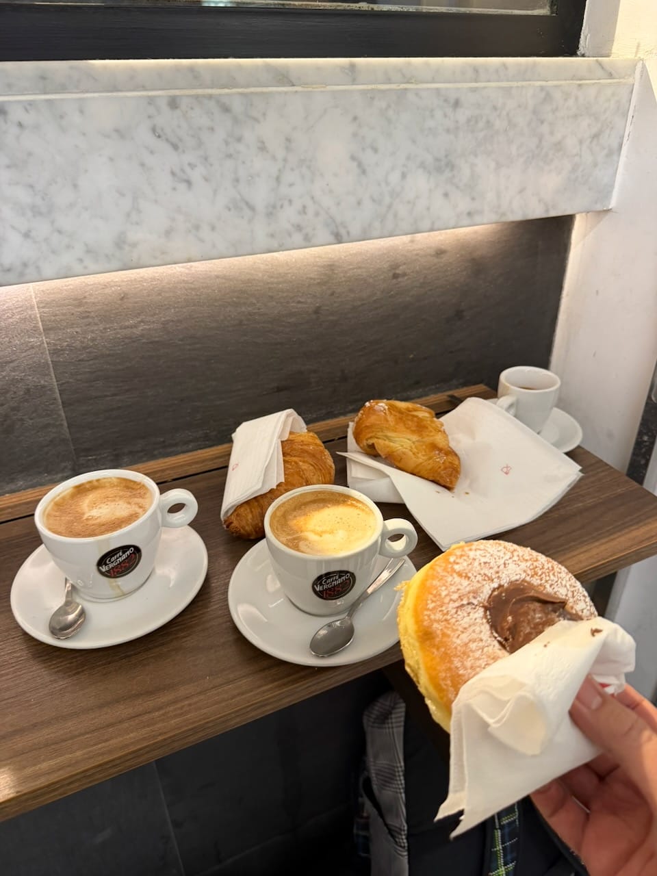 Another small regret: the hotel breakfast started at 7 am., which meant we missed the excellent buffet we had been enjoying. Instead, we grabbed pastries and espressos like locals, which, wasn’t a bad consolation prize.