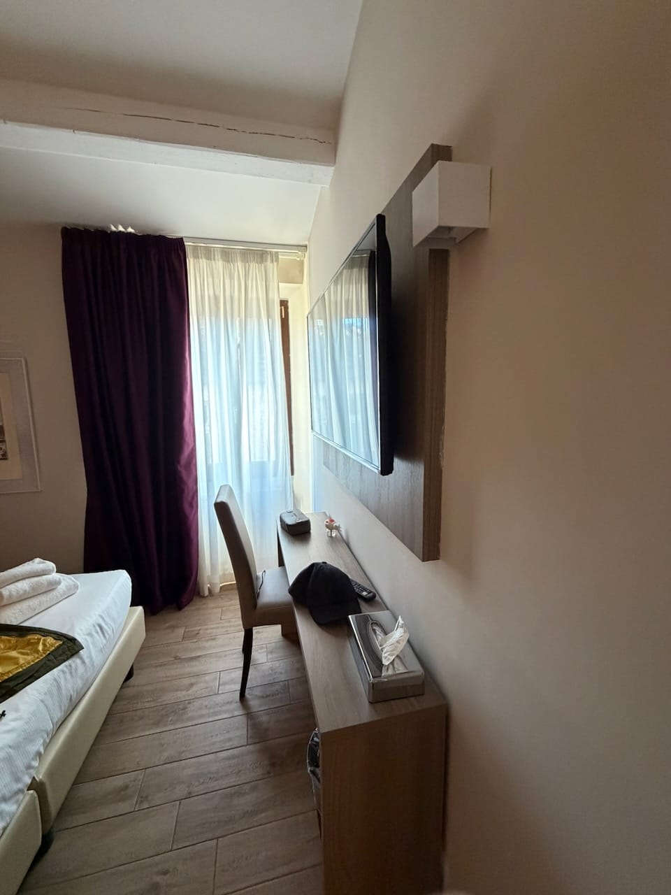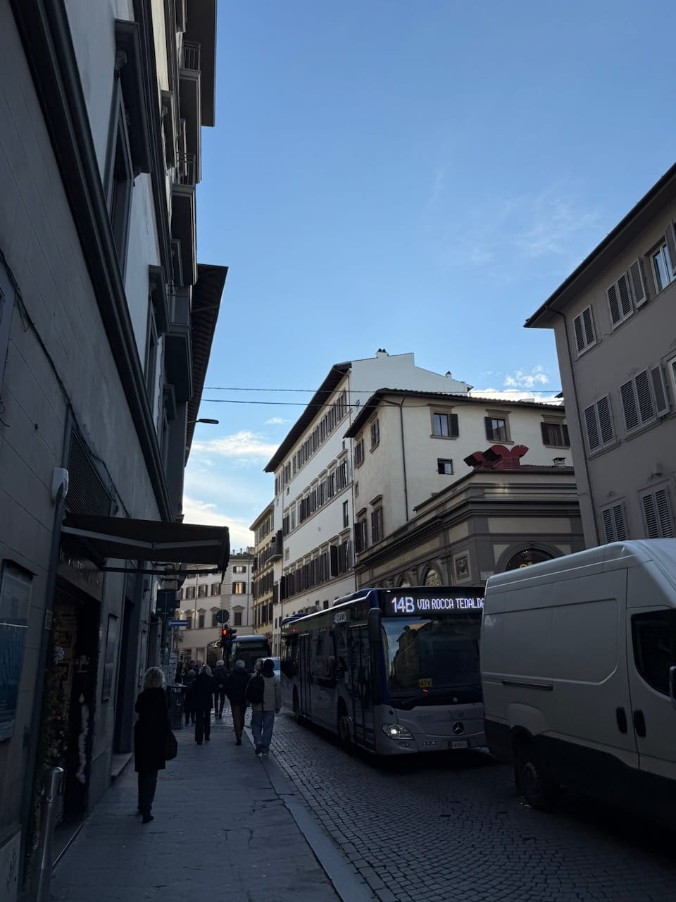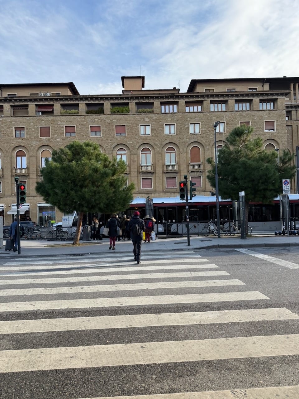 The train arrived in Firenze right on time. From there, we headed to our hotel: Apollo Guest House. Technically, it wasn’t a hotel, but it also wasn’t a typical guesthouse where you share rooms or beds with other travelers. Instead, it felt more like a well-organized collection of private Airbnb-style rooms, which seemed to be quite common in Firenze. It was on the third floor (other guesthouses are on other floors), and the elevator itself was an experience: tiny, old-fashioned, and the kind where you have to open the doors by hand. Charming, slightly terrifying, but classic.
