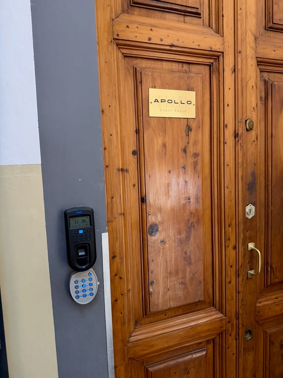 Our check-in was entirely contactless. We received two keypad codes (one for the main entrance, one for the gate at the floor) via an email, and another lockbox code for the room key. It was still early in the morning, and our official check-in time wasn’t until 3 pm., but we had booked the Brunelleschi’s Dome (Cupola) climb for 10:30 am., so there was no time to relax. We only needed to drop our luggage. The staff told us we could simply leave the bags in the hallway, which felt uncomfortable at first until we realized the corridor was accessible only to guests, protected by multiple keypads and security cameras. So we decided to trust the system, dropped our bags, and rushed off toward the Duomo.