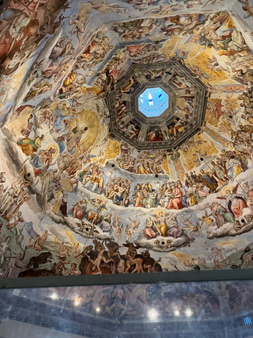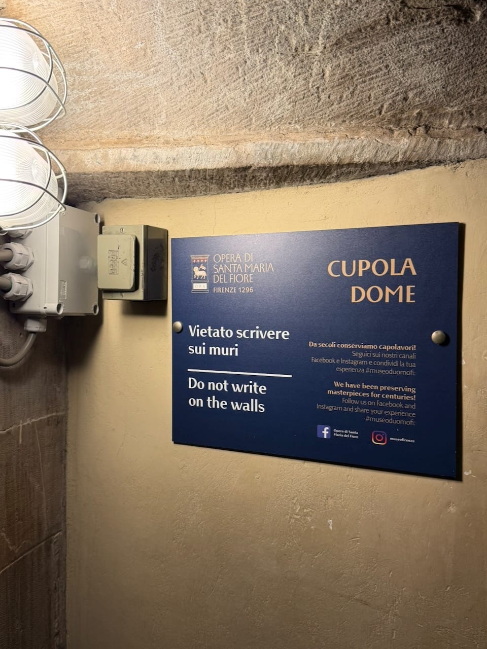 The climb itself was 463 steps. Not easy, but not too tough either. The real challenge was the narrowness of the passageways. At several points, I completely understood why time slot reservations were necessary; there’s simply no safe way for people to go up and down at the same time. About halfway up, we reached the inner circular gallery (a platform running around the inside of the dome). From there, we could look directly at the massive fresco of The Last Judgment (although behind the glass fences), painted by Giorgio Vasari and Federico Zuccari, covering the interior of the dome. It felt like we were already near the top... We were not. That platform was only the halfway point. There were still more than 200 steps waiting for us.