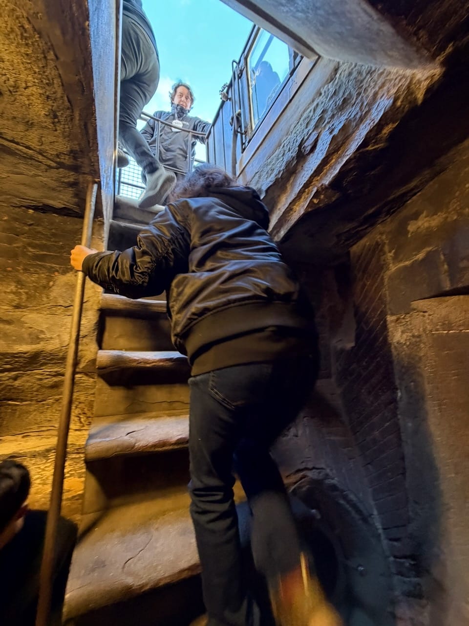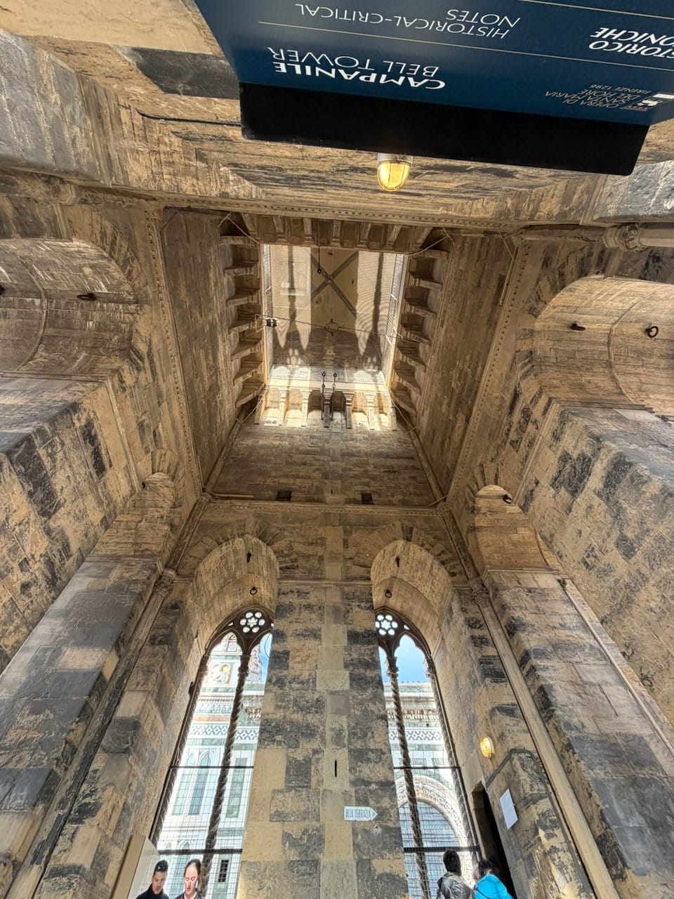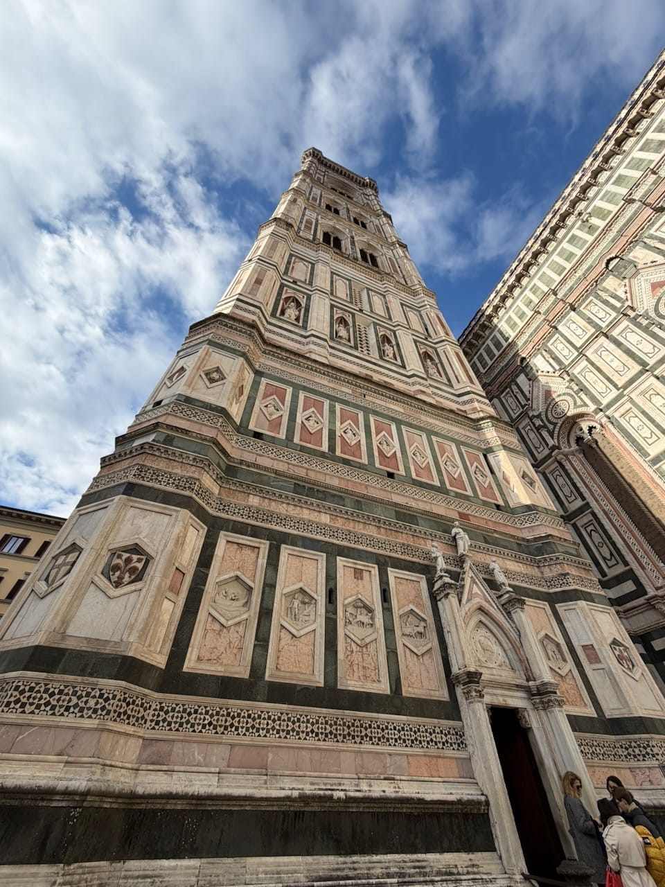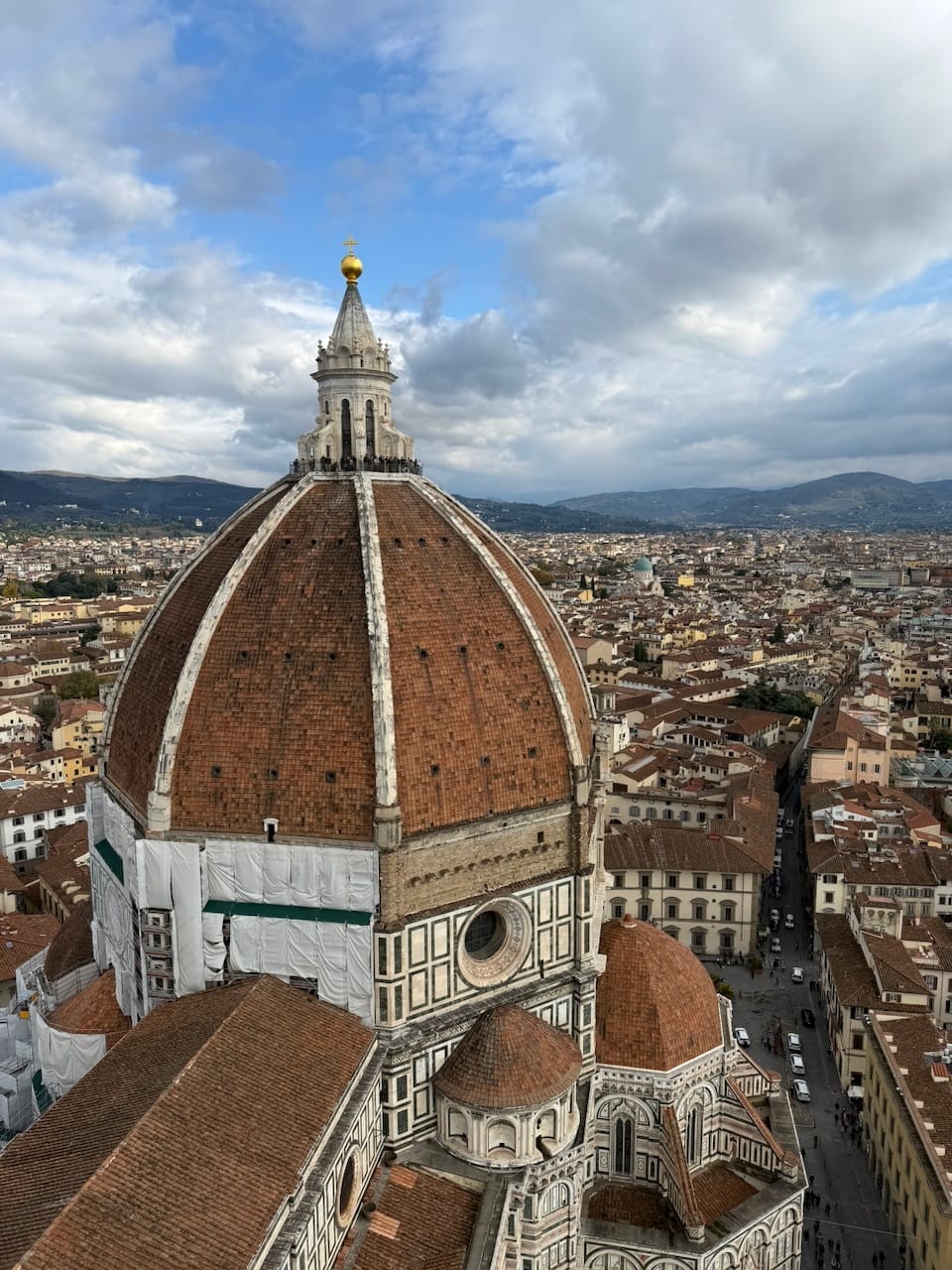 We noticed the line had shortened, so we headed for Giotto’s Bell Tower. The panoramic view from the top of the Duomo had been stunning, but it missed one crucial thing: the Duomo itself. The Bell Tower is the only place where we could truly frame the cathedral together with the city of Firenze — and that alone made the climb worth it. That said, it was another 414 steps. The first day had been a battle of distance; this day was a battle of height. Thankfully, the tower is divided into three or four levels, where we could stop, breathe, and reset our pace. Each level offered a slightly different perspective of the Duomo and the city. And at the very top came the final reward: the perfect frame: the Duomo rising over Firenze.