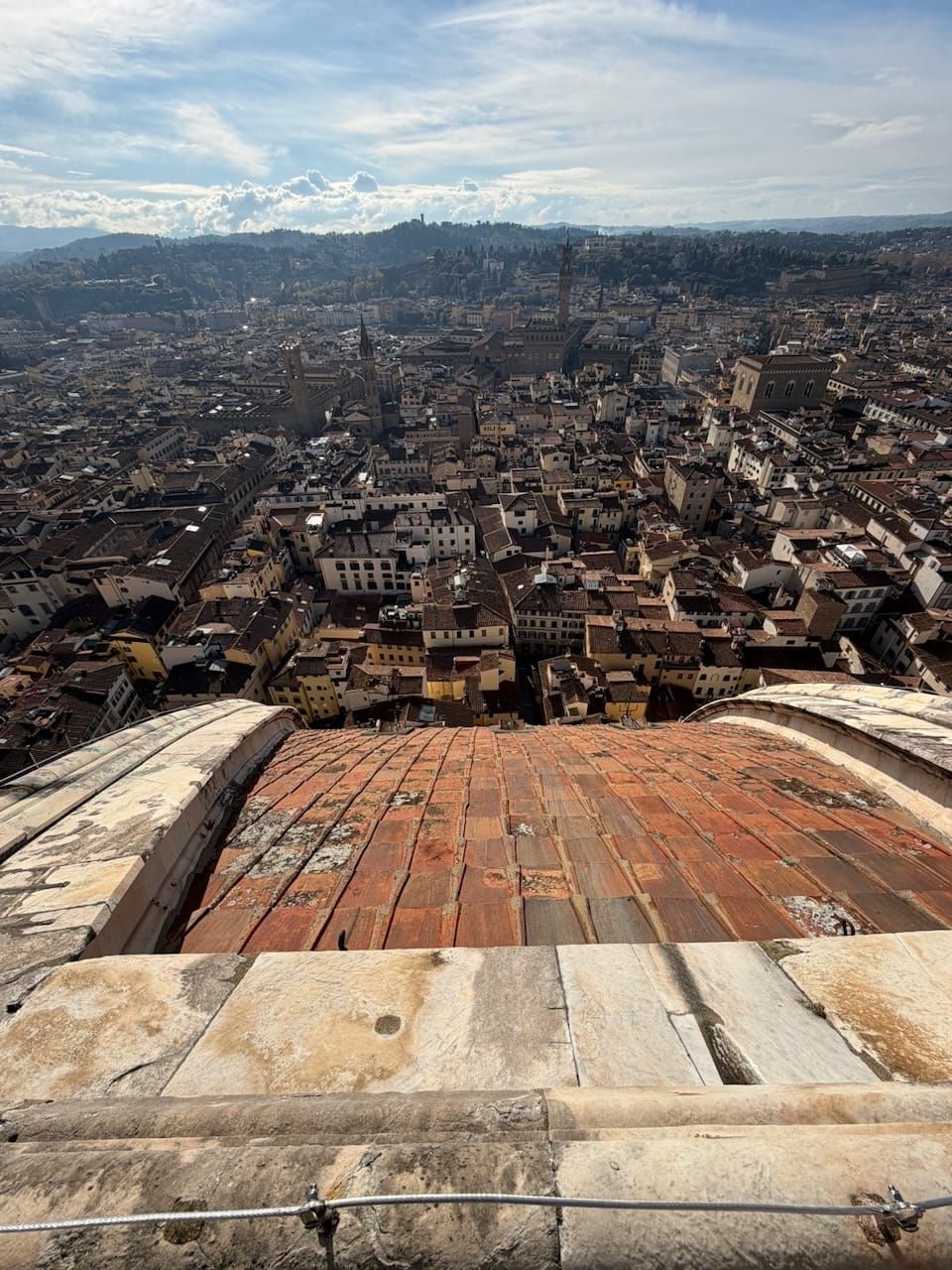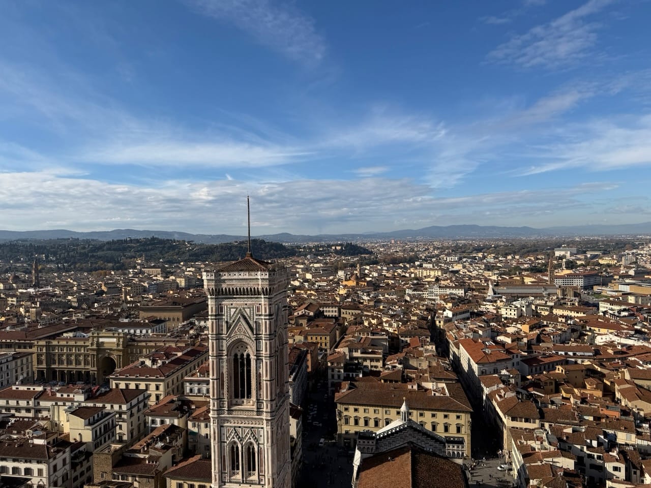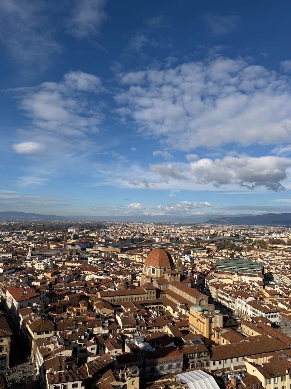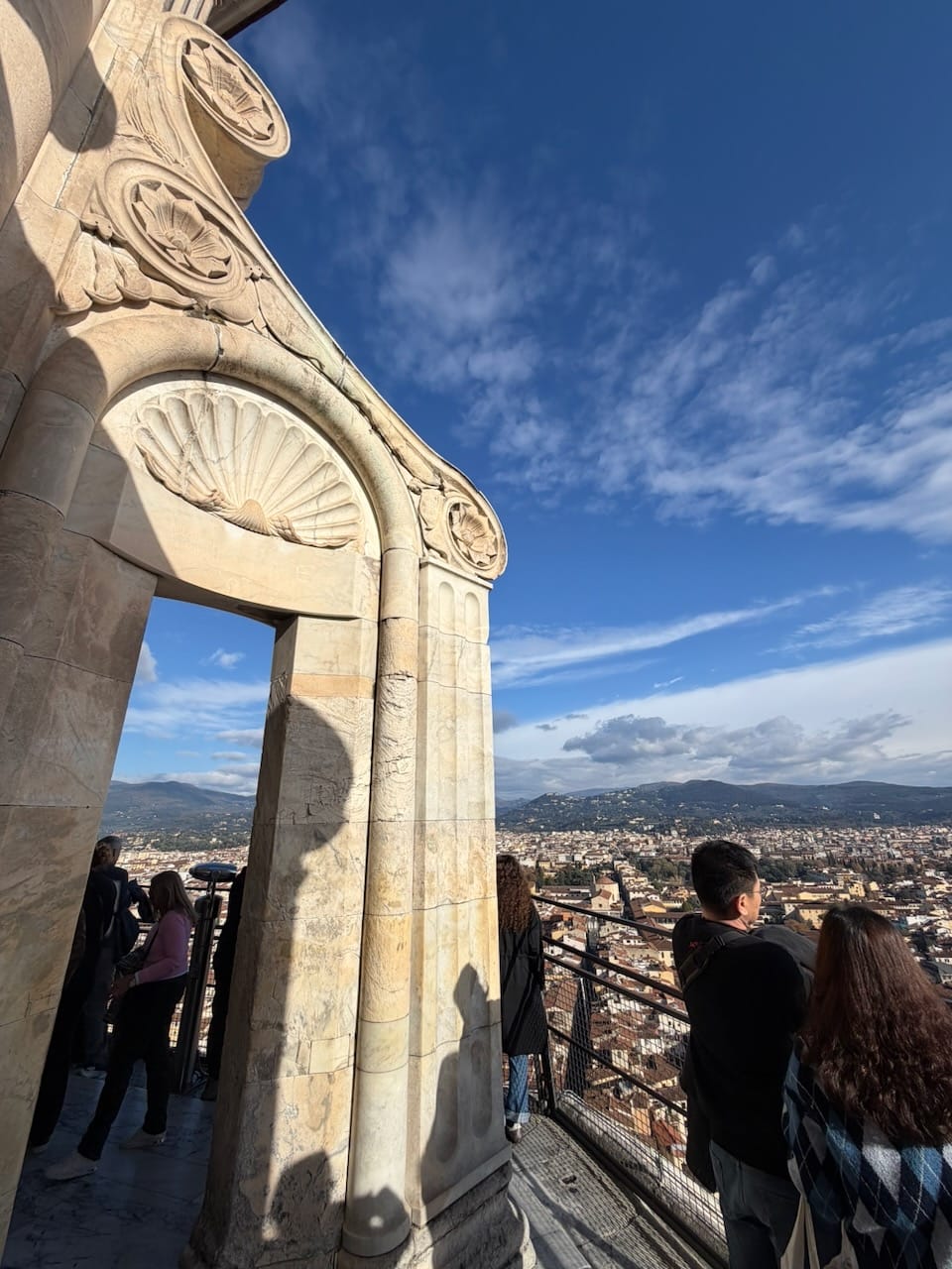 And the top was every bit as rewarding as a good climb should be. From there, we had a 360-degree panoramic view of Firenze. The rainy days in Rome had finally cleared in Firenze, and the sky opened up just in time, making the city below look almost unreal. It was the perfect reward.