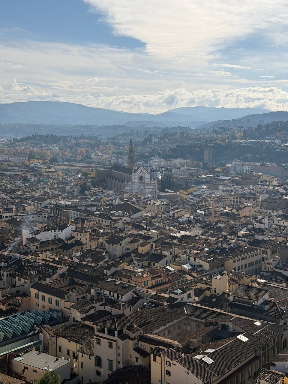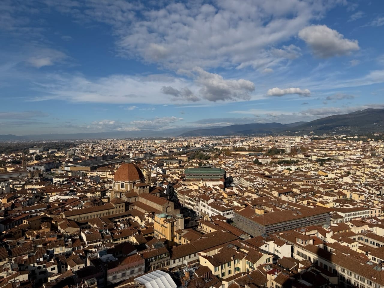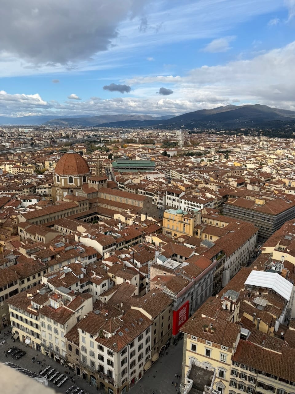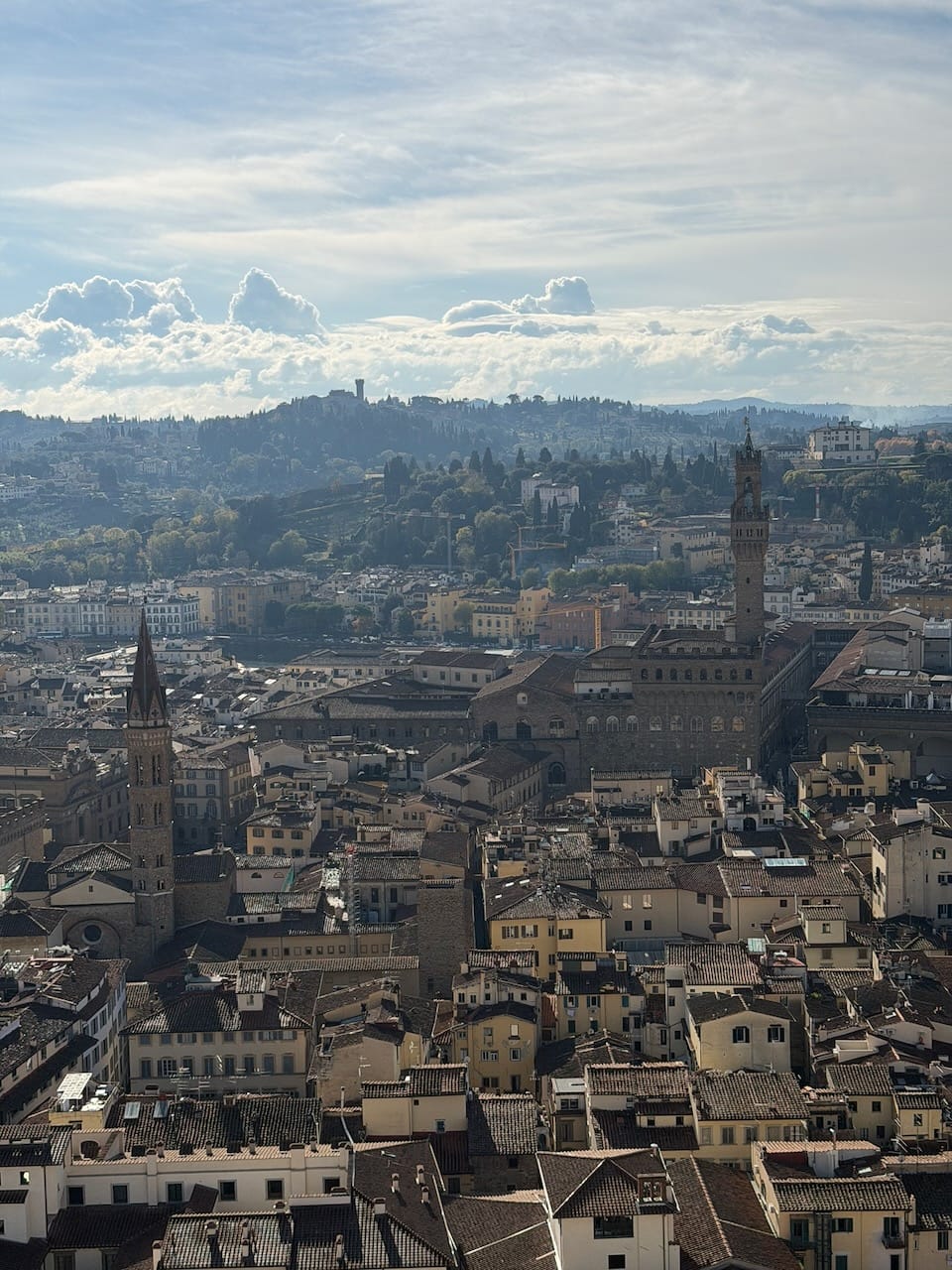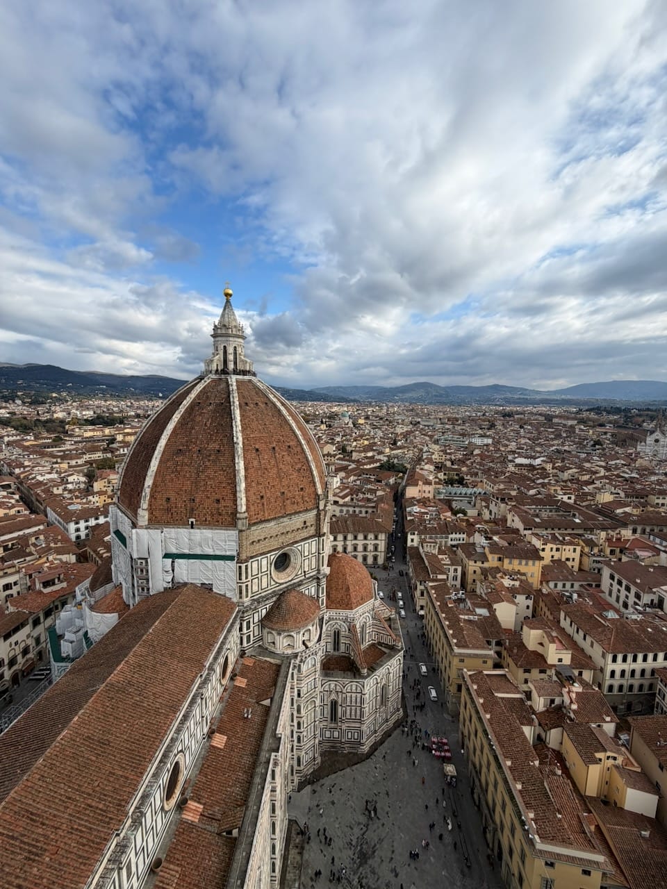 And the top was every bit as rewarding as a good climb should be. From there, we had a 360-degree panoramic view of Firenze. The rainy days in Rome had finally cleared in Firenze, and the sky opened up just in time, making the city below look almost unreal. It was the perfect reward.