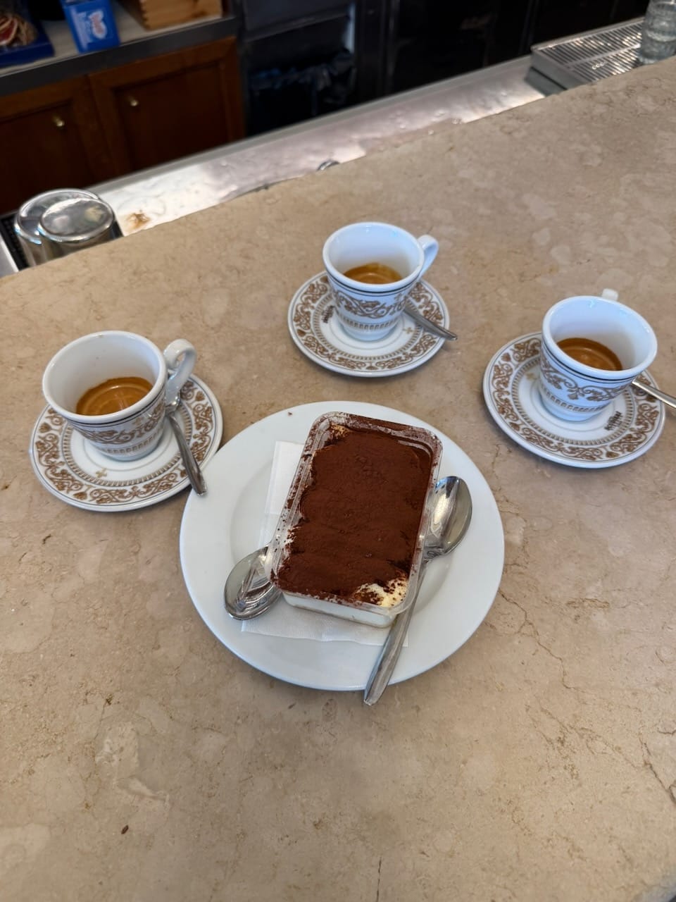 As always, restrooms were an issue. We couldn’t find a public one before the climb—and, actually, we tried but the place Google Maps pointed us to was completely fake. So we did what experienced travelers do: we found a cafe, and Scudieri saved us. A cafe is always the best solution when you need a restroom. As a bonus, we enjoyed excellent espresso and a very good tiramisu before moving on.