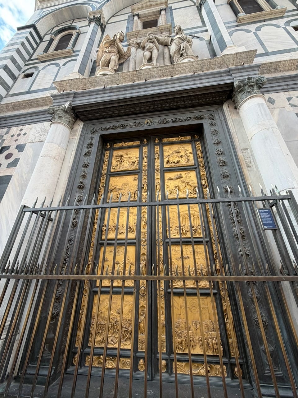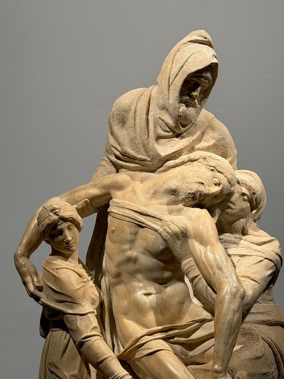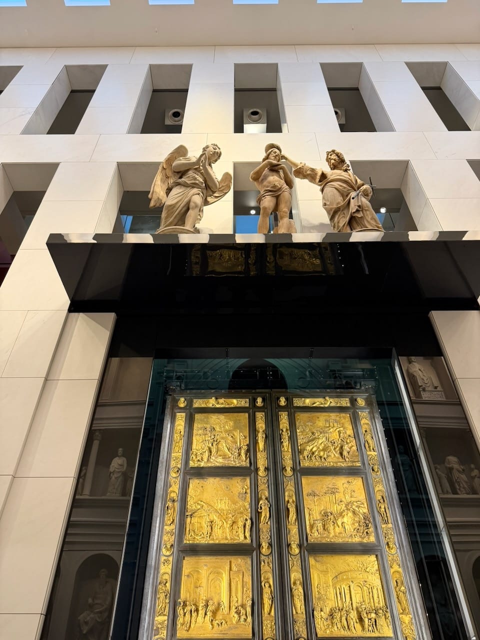 The final stop covered by our pass was the Museo dell’Opera del Duomo (Opera del Duomo Museum)—and in many ways, this was the real highlight. The original Gates of Paradise are not on the Baptistery at all; they are preserved here in the museum, along with many of the sculptures we had just seen outside. Seeing them up close made perfect sense: after centuries of weather, pollution, and touch, this is the only way these works could survive. We also stood in front of Donatello’s Magdalene, fragile, raw, almost painful in its honesty. And Michelangelo’s Florence Pietà, unfinished and powerful, with the figure of Nicodemus believed to be a self-portrait of Michelangelo himself. They felt deeply human, and that, perhaps, is the essence of the Renaissance.