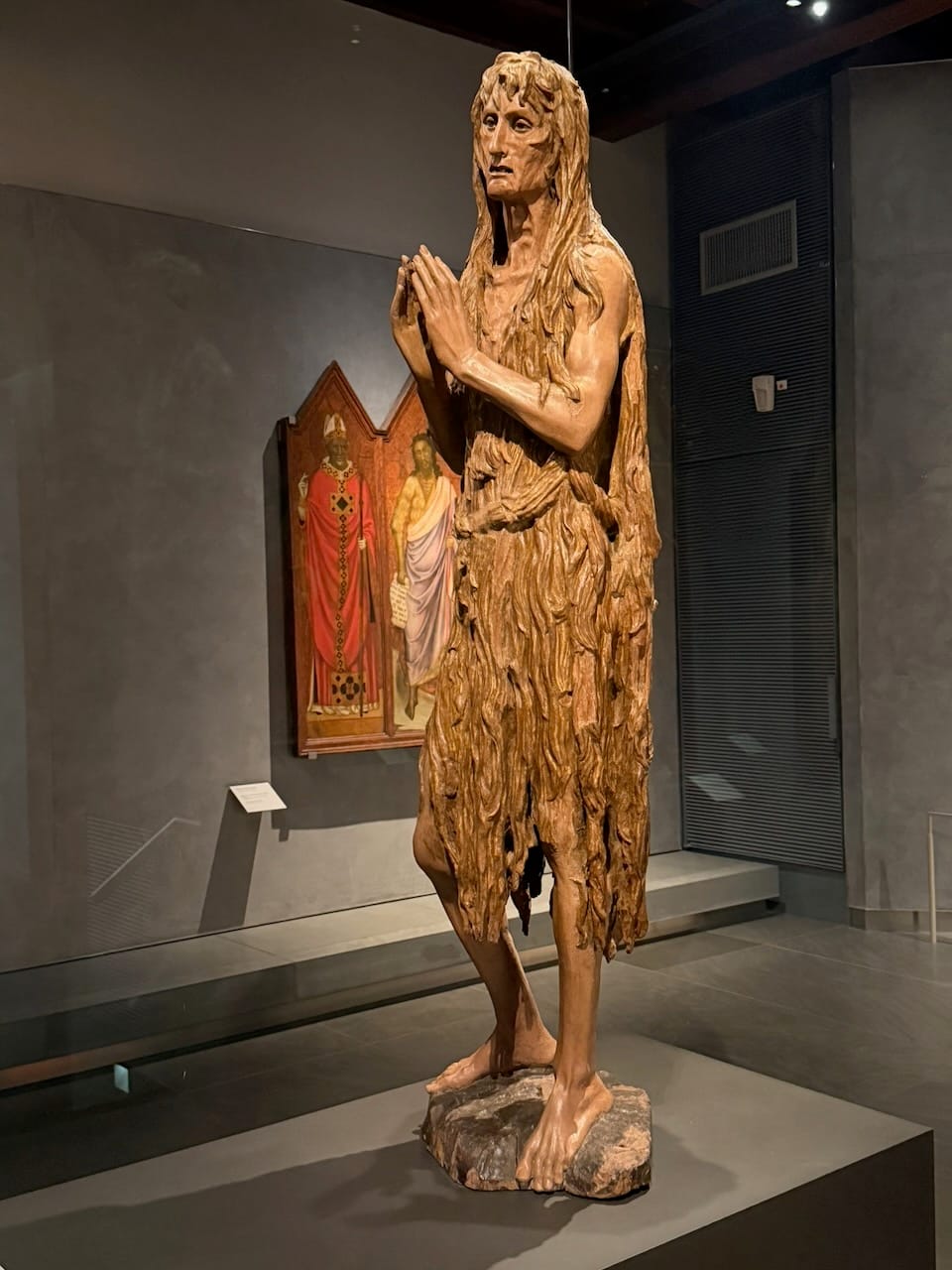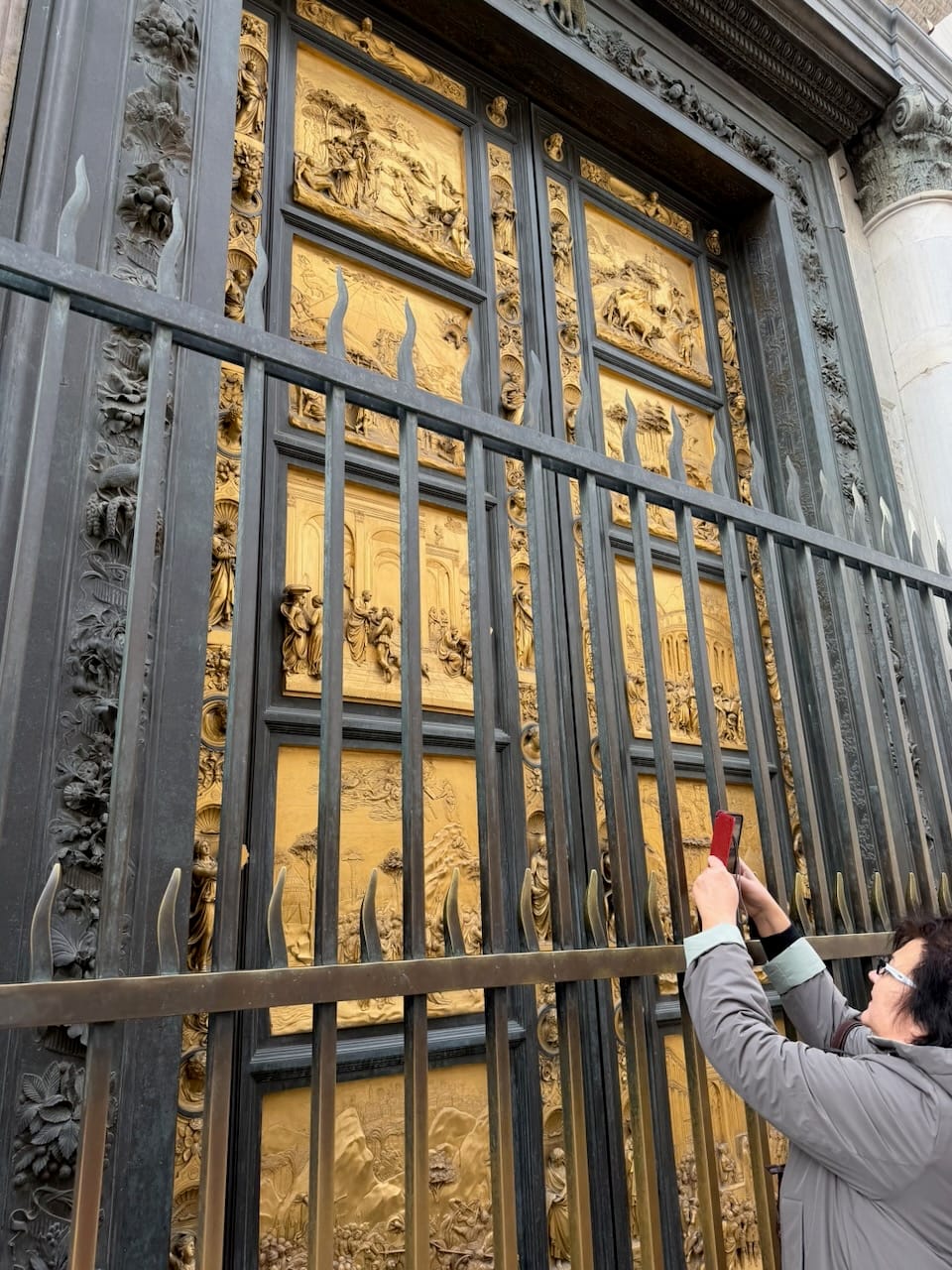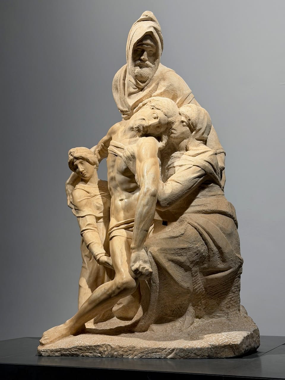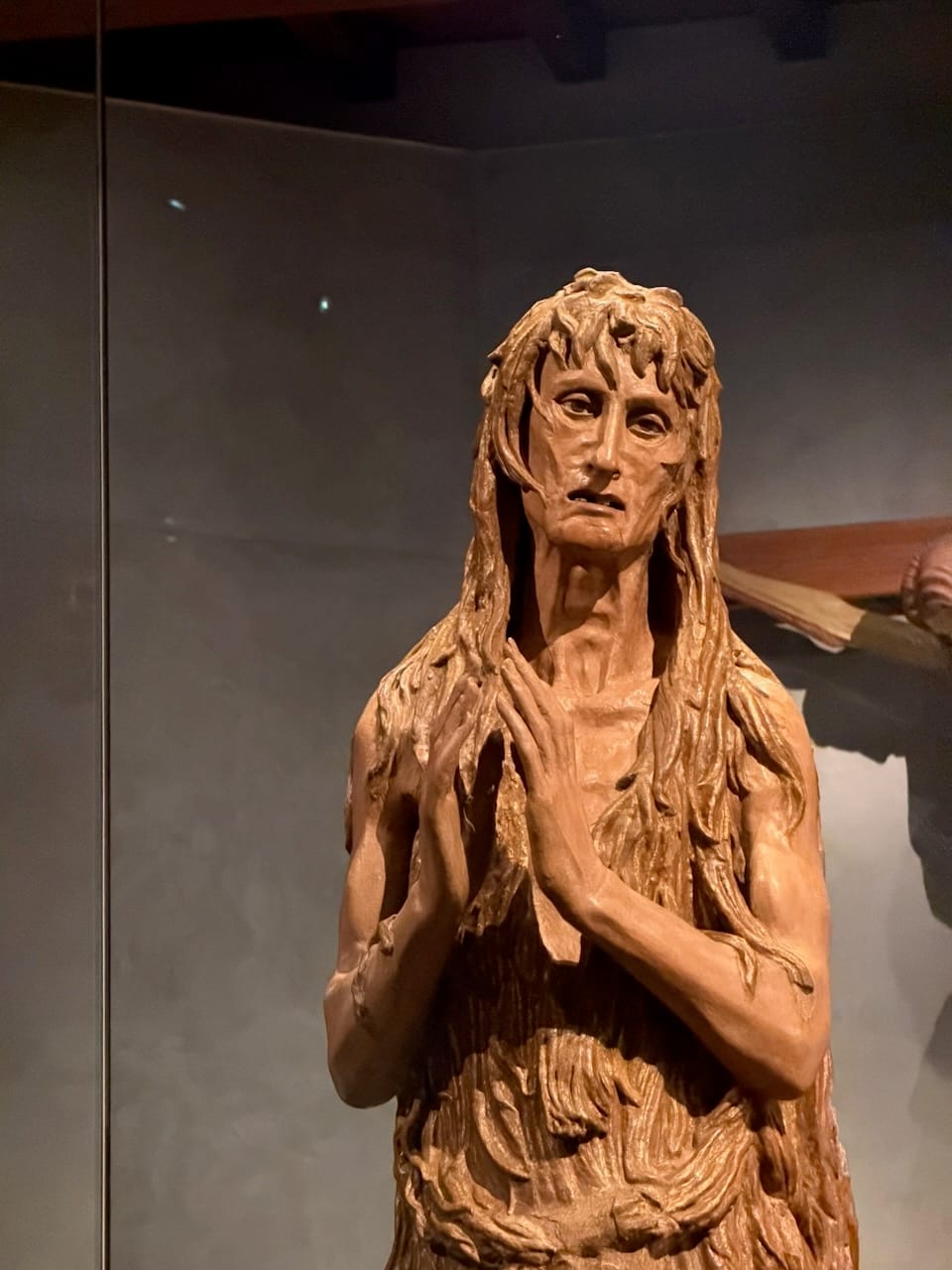 The final stop covered by our pass was the Museo dell’Opera del Duomo (Opera del Duomo Museum)—and in many ways, this was the real highlight. The original Gates of Paradise are not on the Baptistery at all; they are preserved here in the museum, along with many of the sculptures we had just seen outside. Seeing them up close made perfect sense: after centuries of weather, pollution, and touch, this is the only way these works could survive. We also stood in front of Donatello’s Magdalene, fragile, raw, almost painful in its honesty. And Michelangelo’s Florence Pietà, unfinished and powerful, with the figure of Nicodemus believed to be a self-portrait of Michelangelo himself. They felt deeply human, and that, perhaps, is the essence of the Renaissance.
