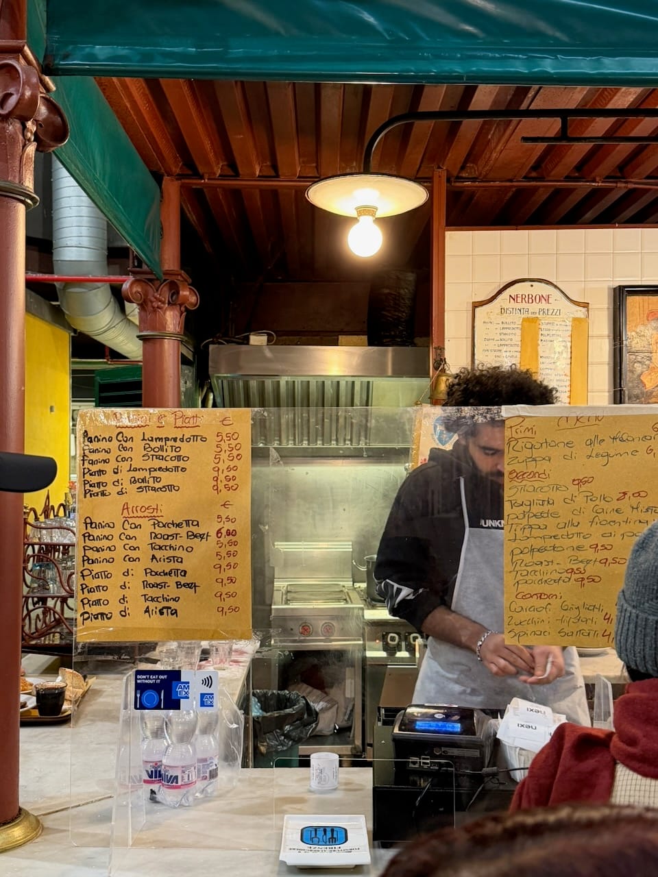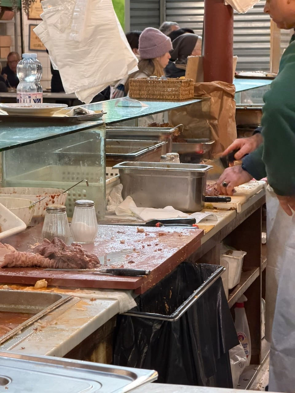 For lunch, we went to Nerbone, located inside a marketplace building: the Mercato Centrale. It was a little tricky to find at first, but the long line gave it away. I had discovered the place in a Korean travel guide book and came specifically to try two local classics: Panino con il Lampredotto (lampredotto sandwich) and Panino con Bollito (boiled beef sandwich). The guidebook, however, only listed them in Korean: 곱창버거 (lampredotto) and 수육버거 (bollito). I was hesitating at the counter, trying to translate in my head, when the cashier suddenly and fluently said, “곱창버거, 수육버거?” in Korean. Problem solved. And yes, they were the best meat-lover sandwiches I’ve ever had.