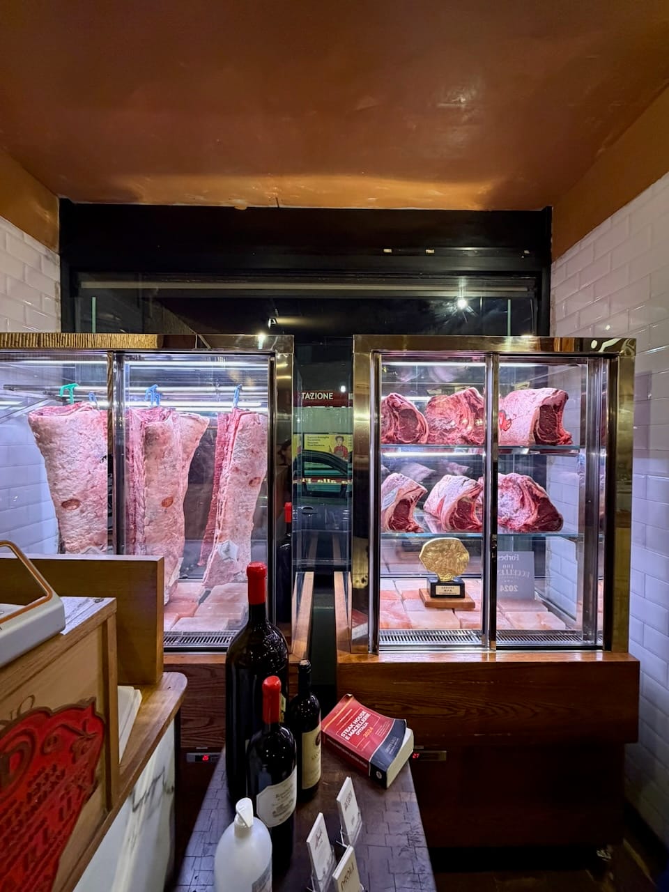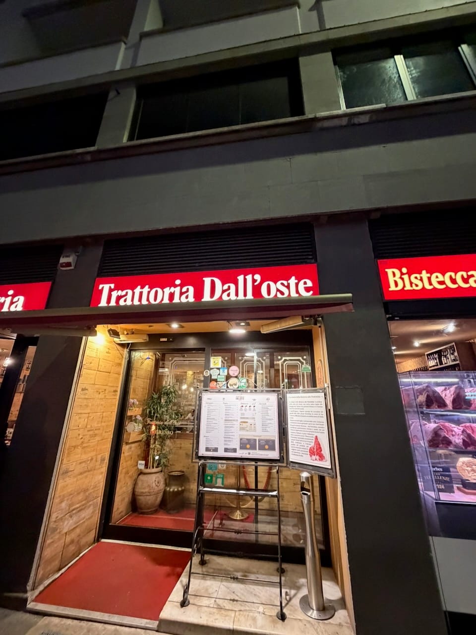We had an early dinner reservation at Trattoria Dall’Oste at 5:30 pm., which was the only available slot. In Italy, we quickly learned that most people don’t start dinner until around 7 pm., so the place was still waking up when we arrived. When I first visited Firenze in 1999, I remembered the steak being incredible, and clearly, that wasn’t just my imagination—I also heard it from many others. So this time, trying a proper Firenze steak was another objective. Dall’Oste is one of the most famous steak houses in the city, with several locations. We chose the one closest to the station, which also seems to be their main branch.