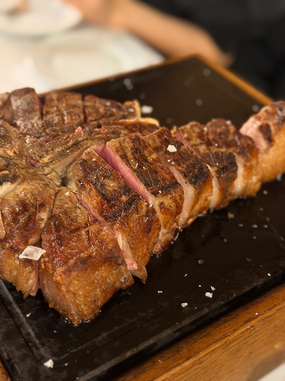 The food was solid. We ordered their special T-bone steak set with appetizers. The steak itself was good, though the flavor leaned more toward an American dry-aged steak than the slimmer, more distinctive Firenze style I remembered. Still, the portion was massive, and we packed enough leftovers for breakfast the next morning since our accommodation didn’t include breakfast.
