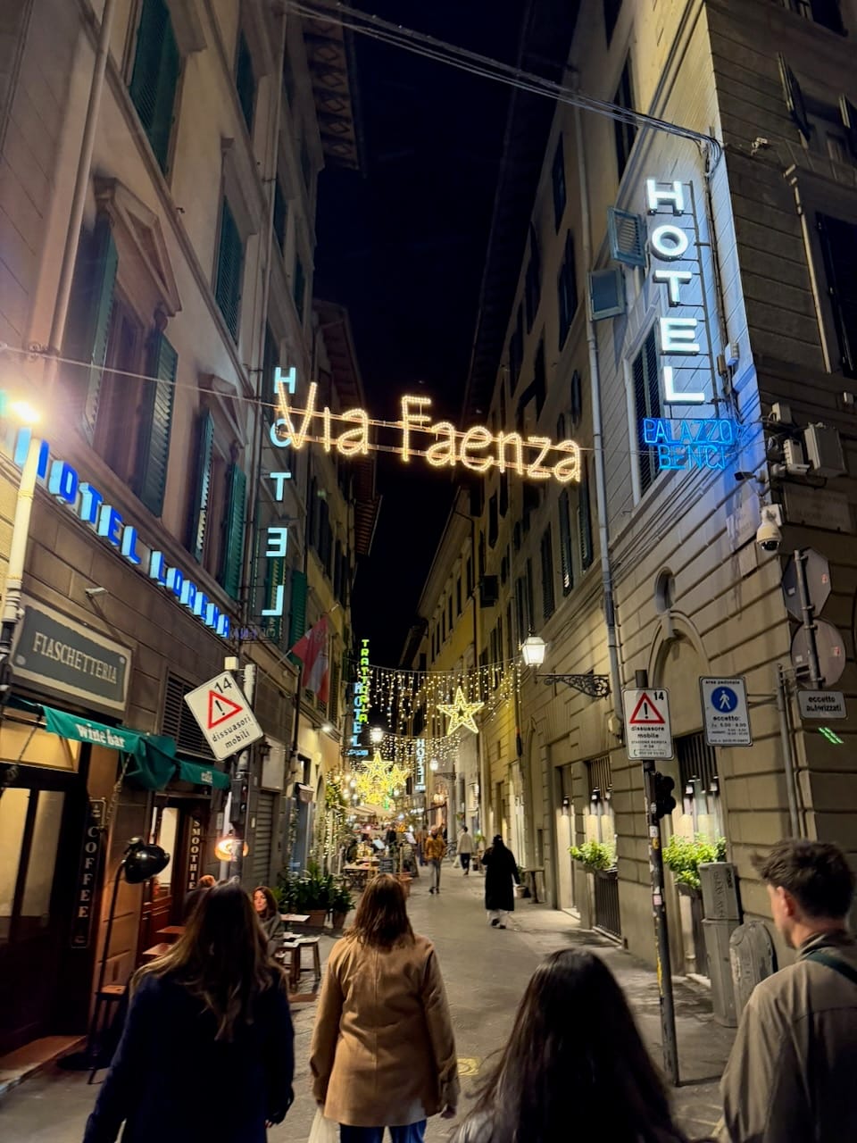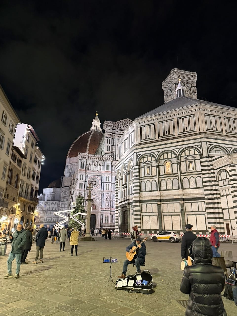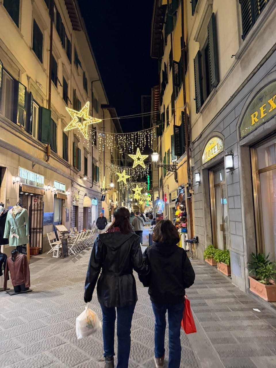 On our way back, we wandered through the night streets of Firenze. The air was chilly, but it carried that quiet, pleasant feeling of approaching Christmas and the end of the year. After a day of climbing, walking, eating, remembering, and rediscovering, the city already felt settled around us.