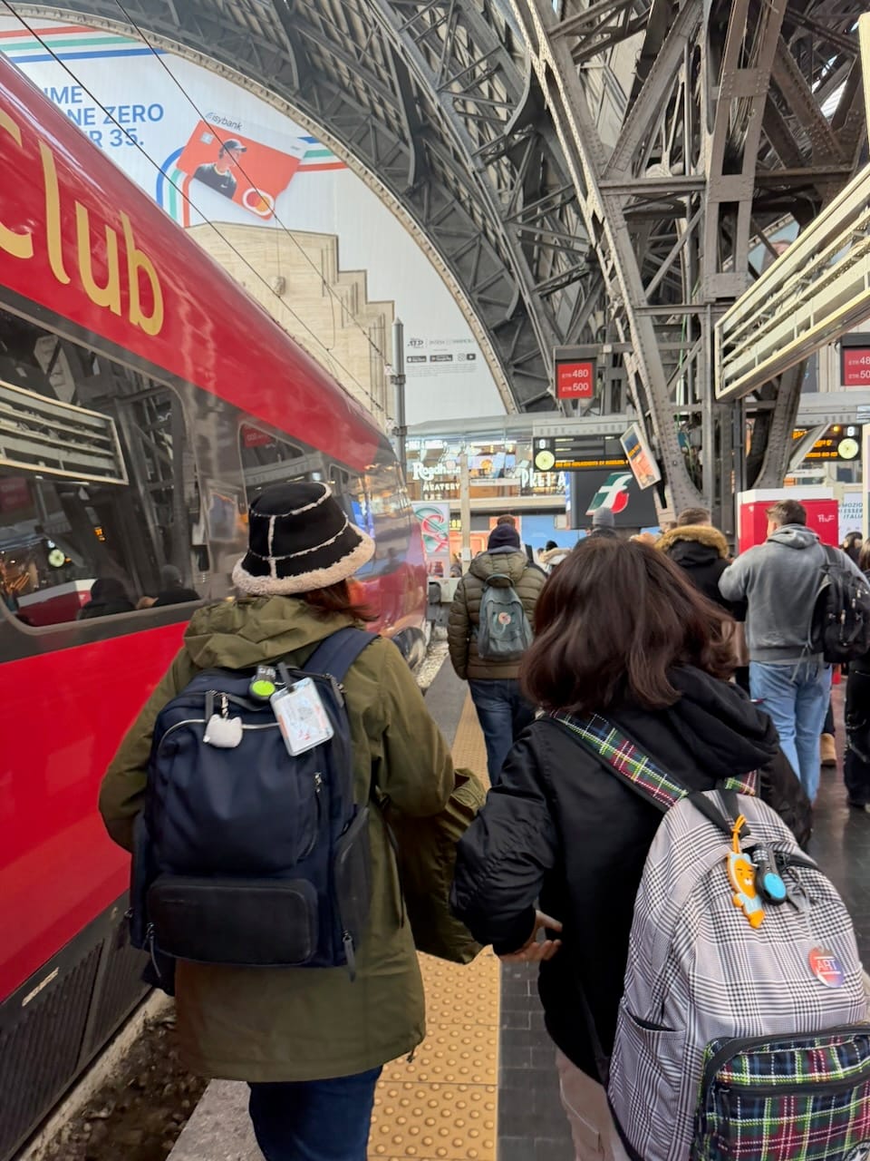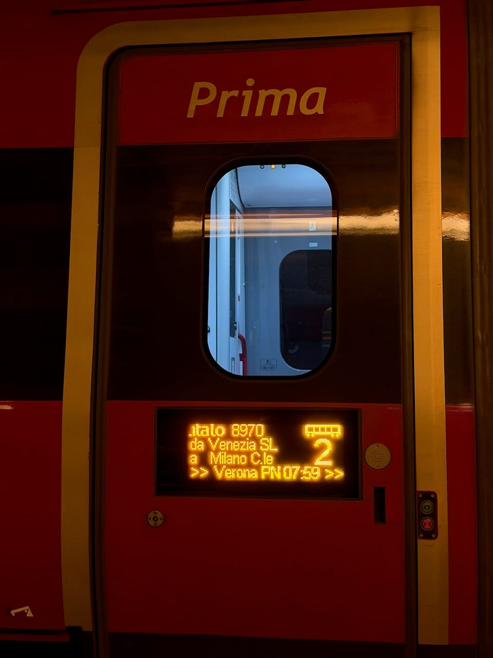 Our train to Milan departed at 6:48 am, which meant another early morning and a bit of rushing. A few small delays in our routine turned into a full sprint through Venezia alleys. What should have been a ten-minute walk became a nervous run through narrow alleys and long tunnel-like corridors. People often say GPS doesn’t work well in Venice because of the tall walls, but I found it usable most of the time, but just not when we were under serious time pressure. I even took a wrong turn or two. Still, we made it to the platform about ten minutes before departure. Barely, but successfully.