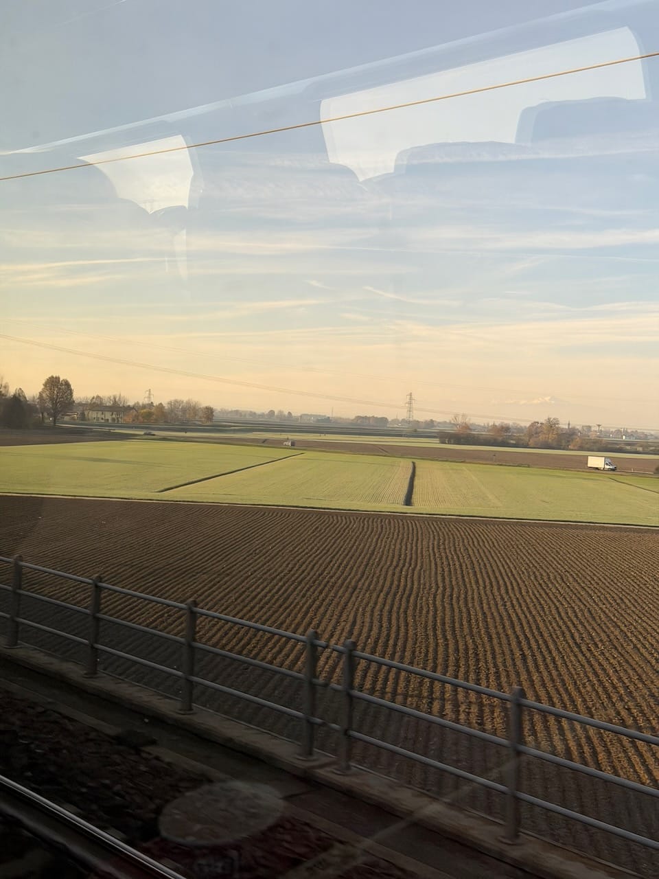 The train was scheduled to arrive at Milano Centrale station at 10:45 am, making it nearly a four-hour ride. As we were moving in north, the scenery changed. The landscape felt sharper, colder. Snow-capped peaks appeared in the distance, and I couldn’t help remembering that both Hannibal and Napoleon once crossed the Alps to reach Italy.