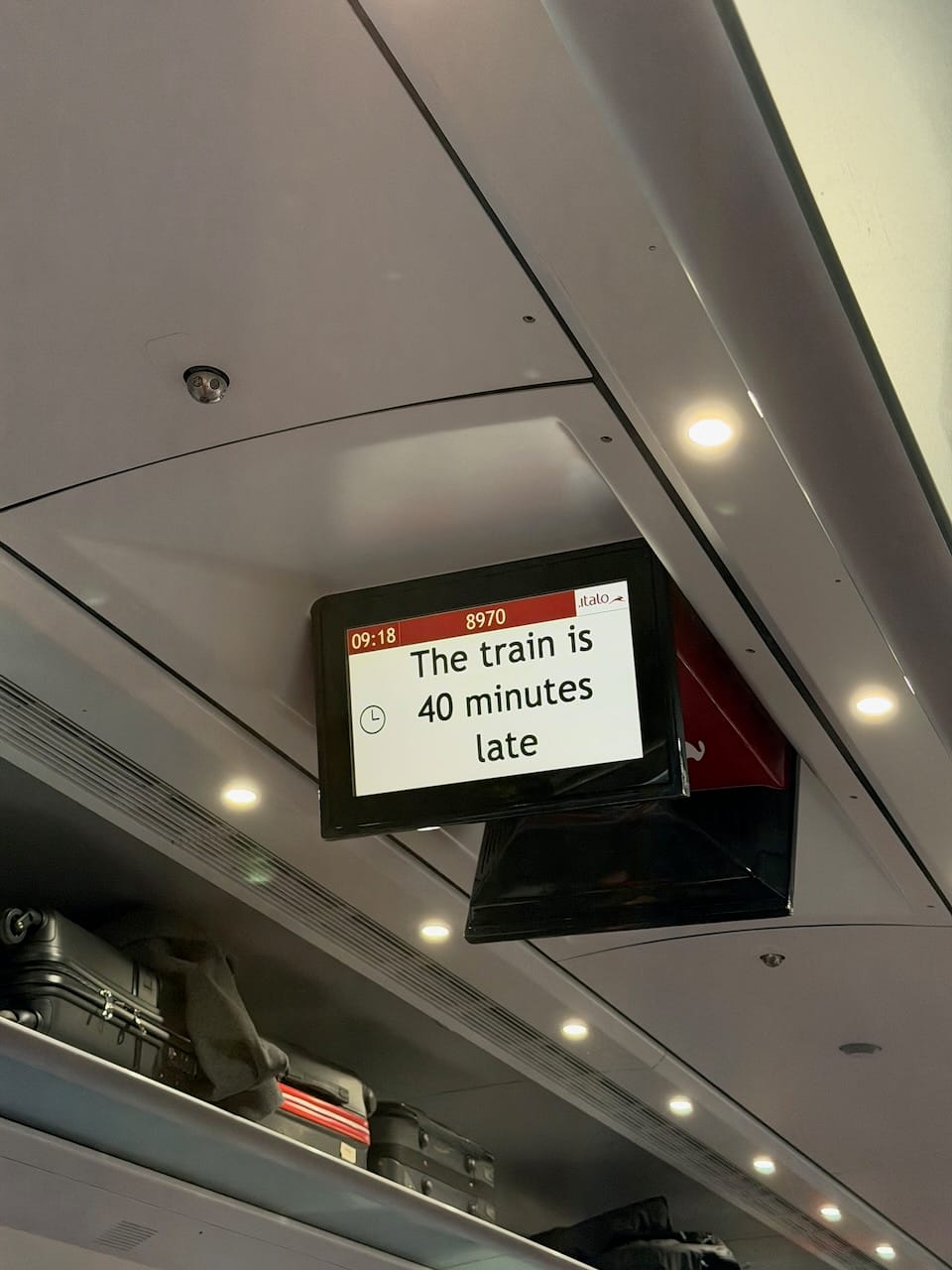 The train paused a few times along the way, and at one point the display even warned of a 40-minute delay. Somehow, though, we arrived only about five minutes late. I still don’t quite understand how they managed that.
