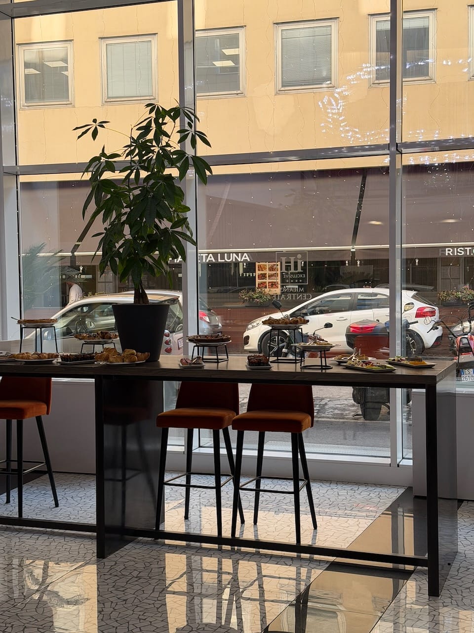 Milano Centrale itself was already a sightseeing destination. Opened in 1931, the station is defined by its massive iron-and-glass arched structure, bold symmetry, and monumental scale, a blend of early 20th-century engineering and grand architecture. Our hotel followed the same strategy as the others: close to the station. We stayed at iH Executive Milano Centrale, just a five-minute walk away. We dropped our bags and headed straight back out into the streets.