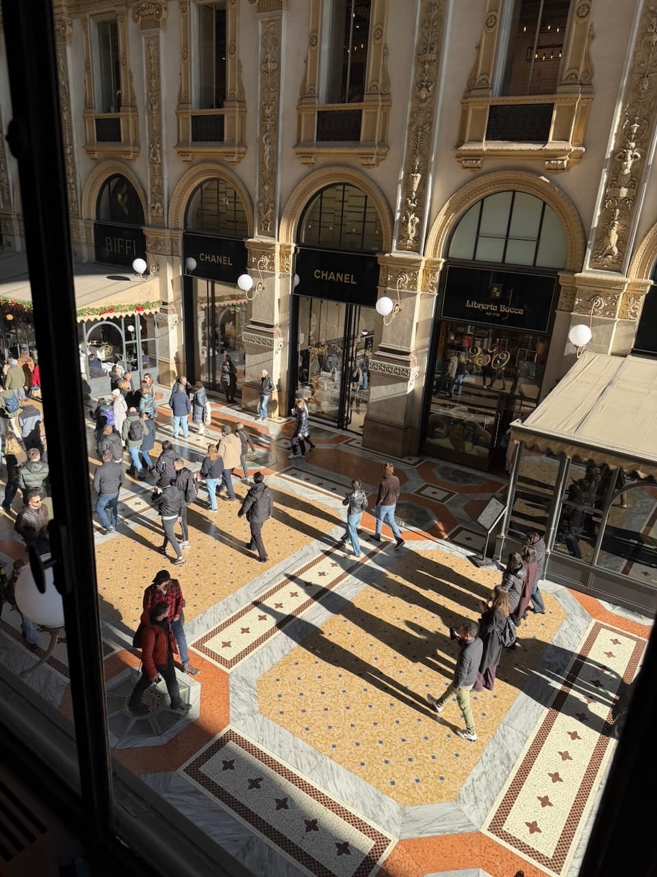 From our table on the second floor, we could look down into the vivid activity of the Galleria below. The meal itself was excellent—the risotto in particular stood out, rich, creamy, and beautifully balanced. It felt like the perfect pause in our day of exploring Milan.