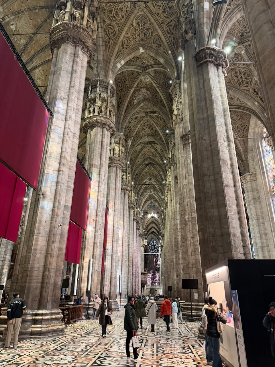 We had booked a Duomo di Milano tour. I’d heard that it ranks somewhere between the third and fifth largest church in the world, depending on how you measure it. We booked through Viator mainly because it offered fast-track access to the rooftop terrace, which was our main goal.