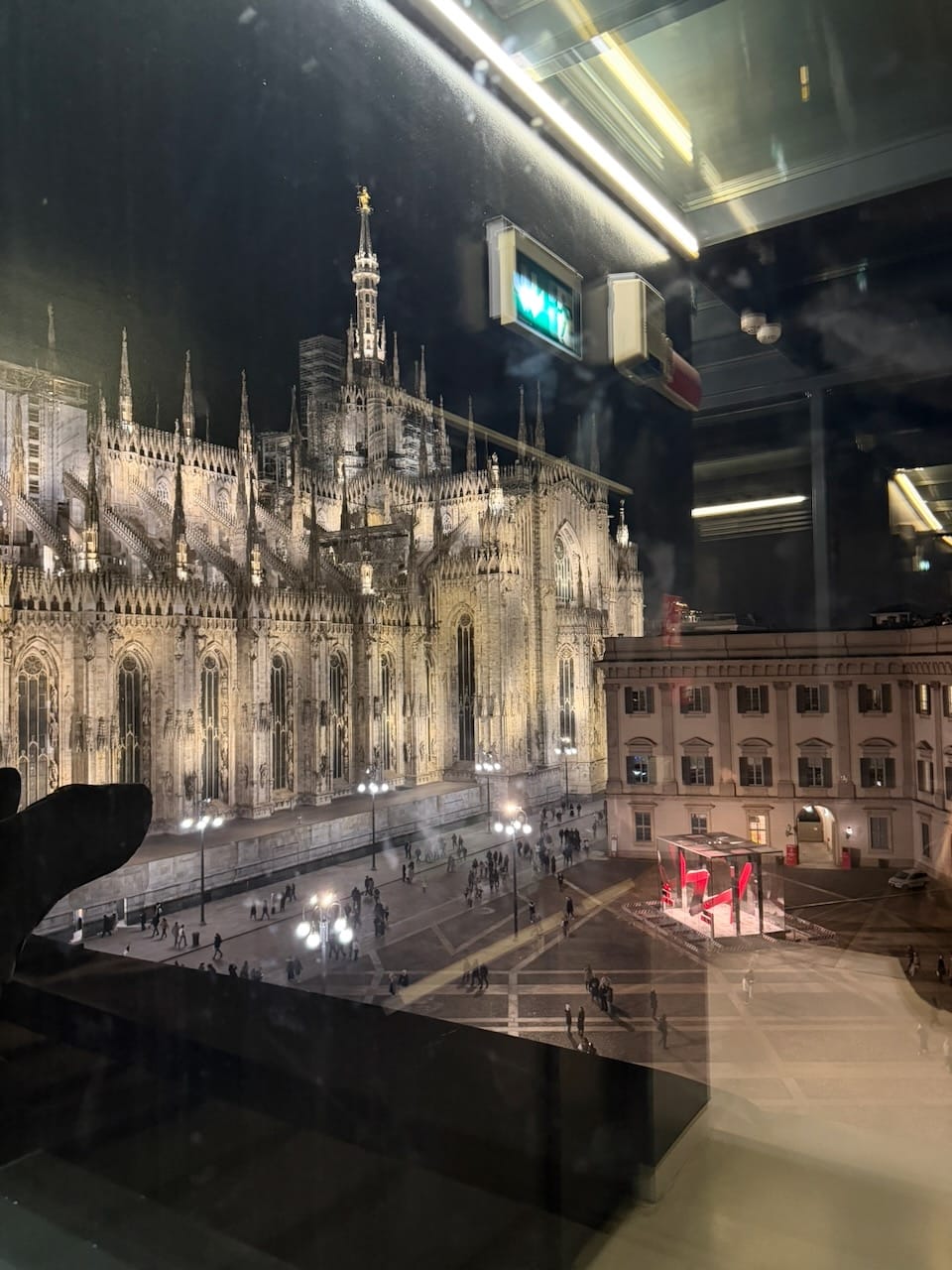 The museum was a refreshing change of pace. The works were bold, experimental, and often challenging, and the overall experience was quietly satisfying. But the most memorable part wasn’t just what was inside the galleries. From the museum’s windows, we could see the Duomo at night, glowing against the dark sky. That view alone felt like an exhibit of its own.