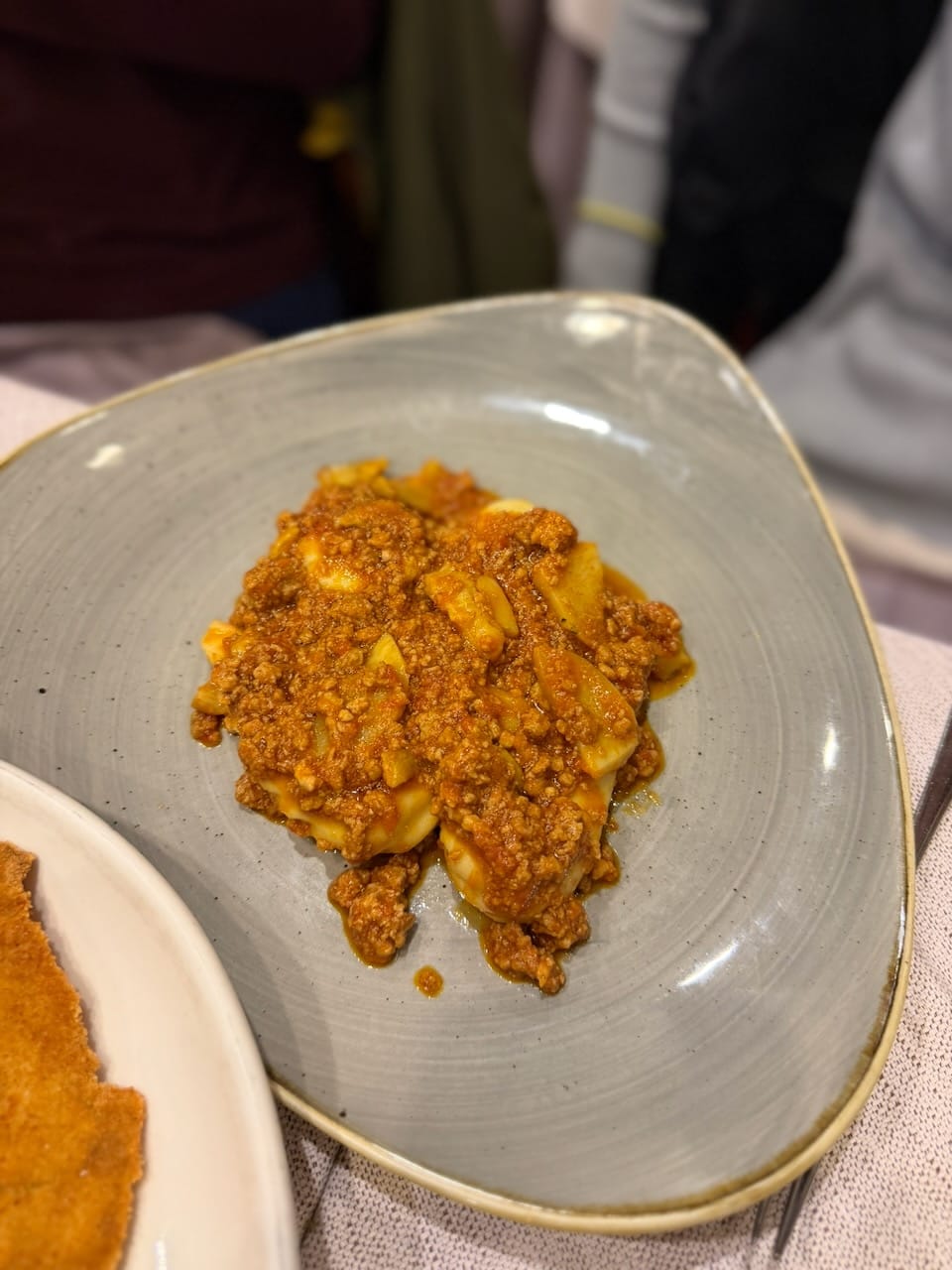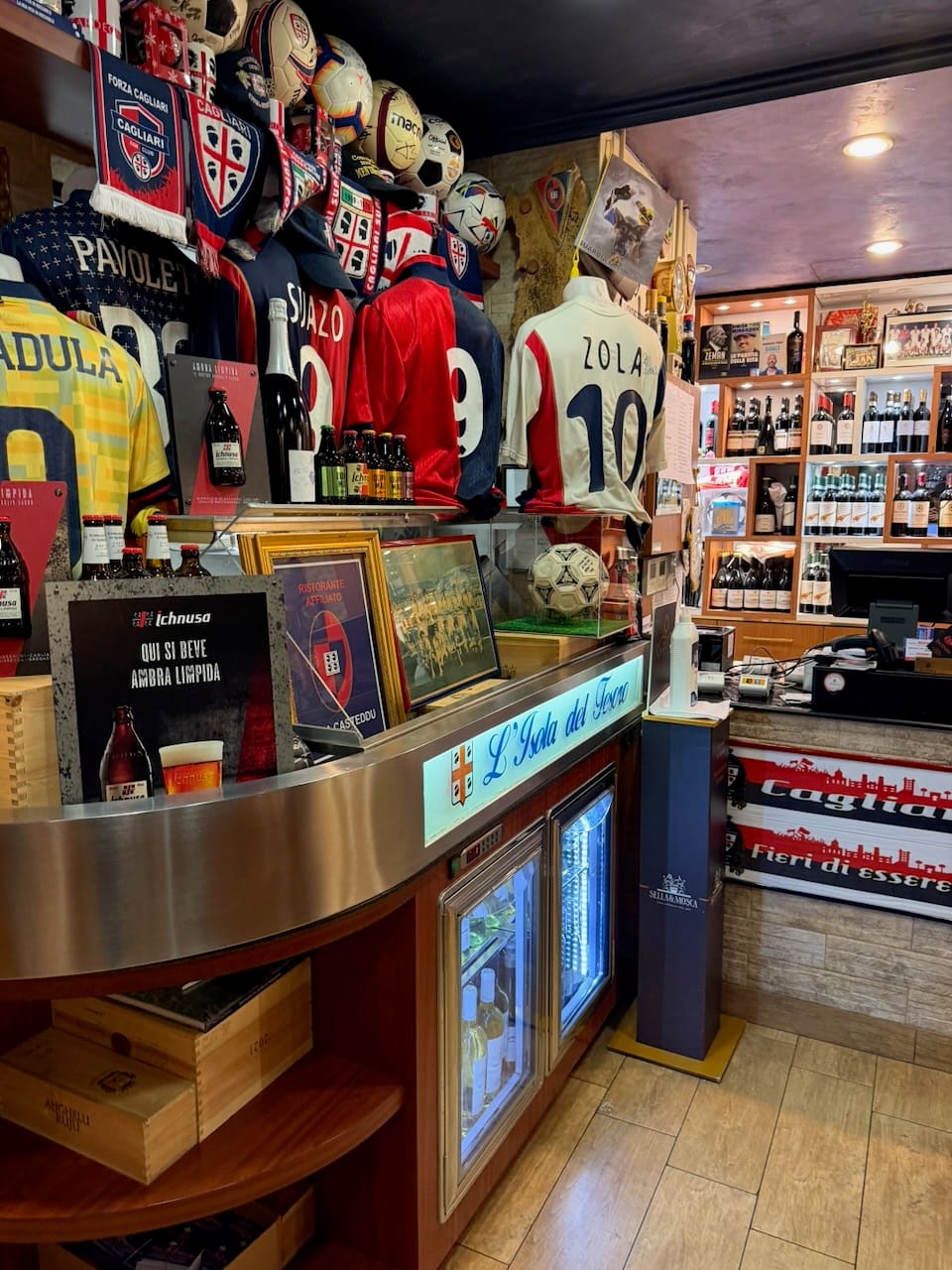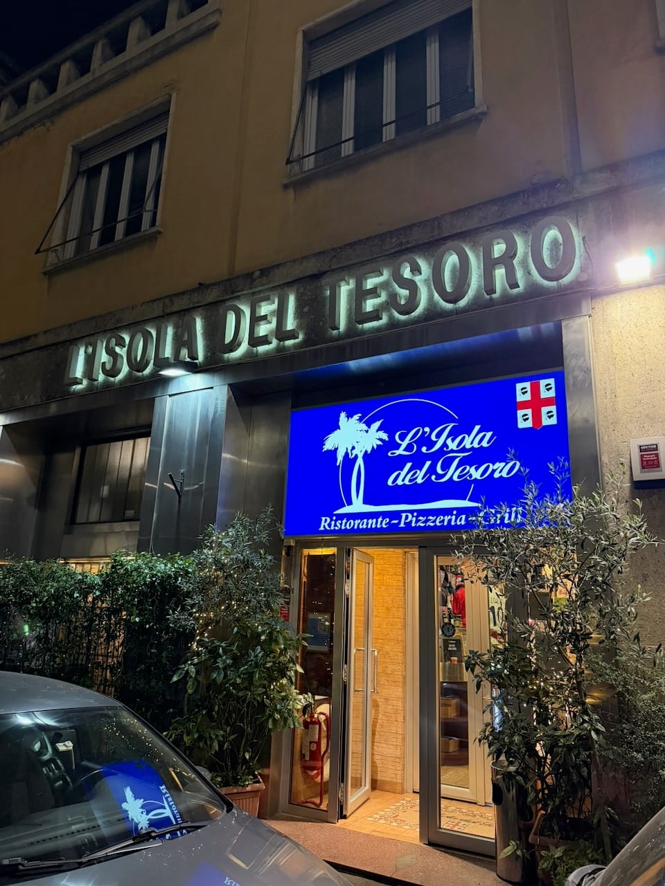 Dinner was at L’Isola del Tesoro, another spot recommended by ChatGPT, and it turned out to be a perfect choice for our final night in Milan. The atmosphere was the most local we had experienced on the trip, with soccer jerseys hanging on the walls, TVs showing matches, and at one point the staff even asking if we wanted to watch the game with them.