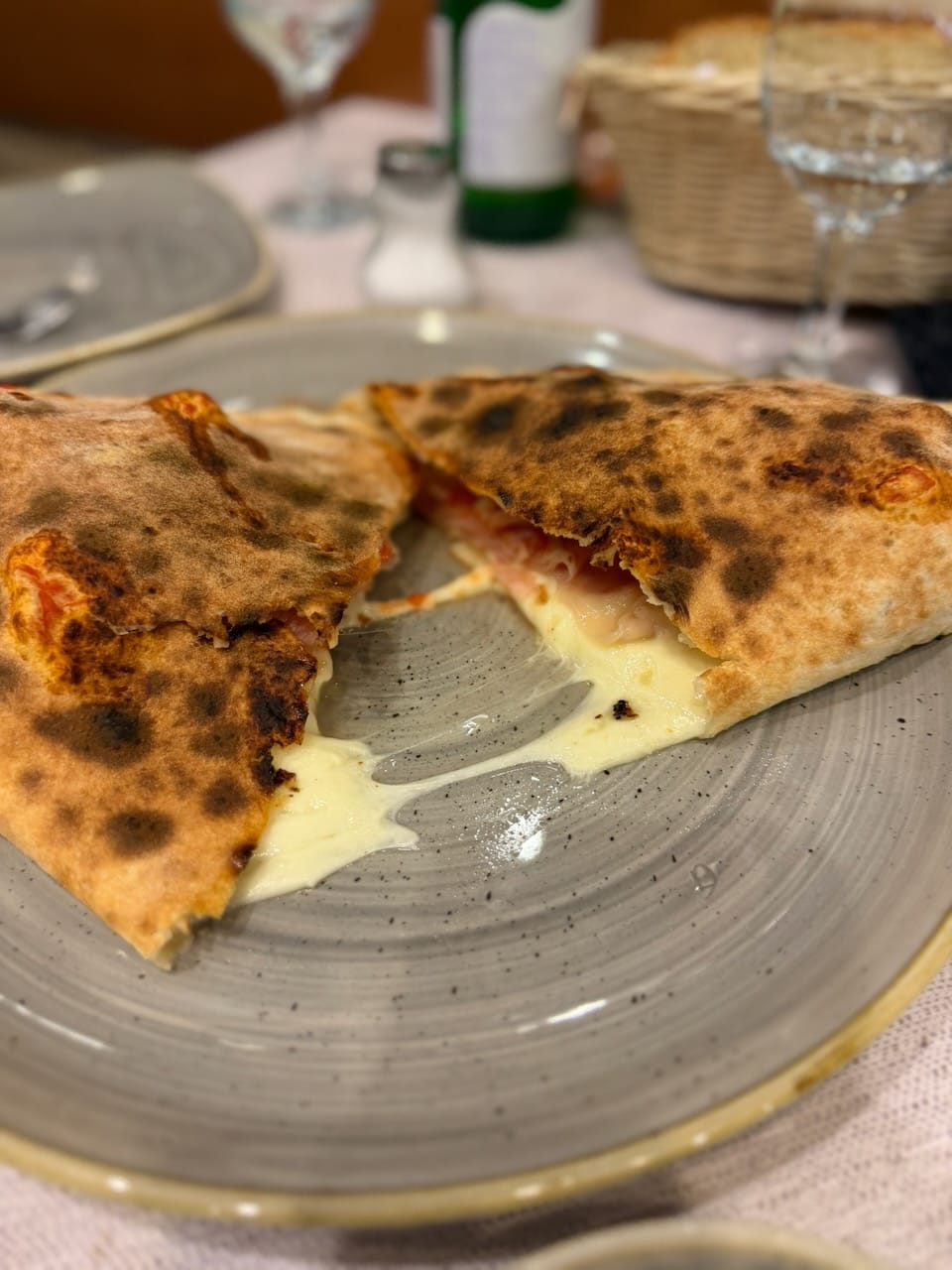 The food, of course, was outstanding. The Milanese-style pork cutlet was far bigger than I expected, practically covering the entire plate, and the calzone, overflowing with molten cheese, was pure comfort food. Everything felt generous and satisfying, the kind of meal that makes you slow down and smile between bites.