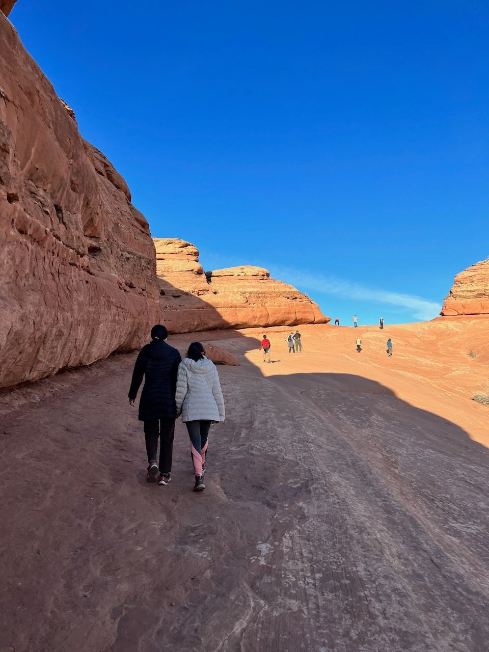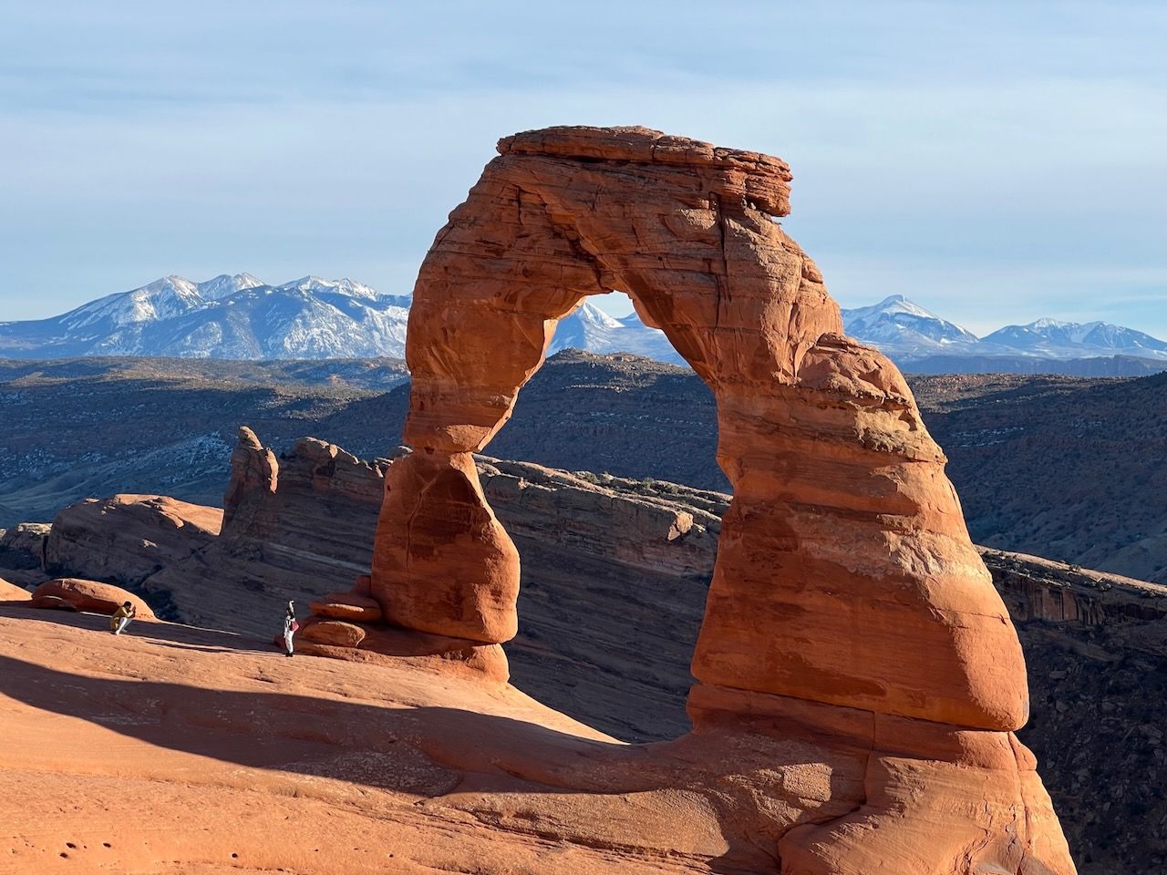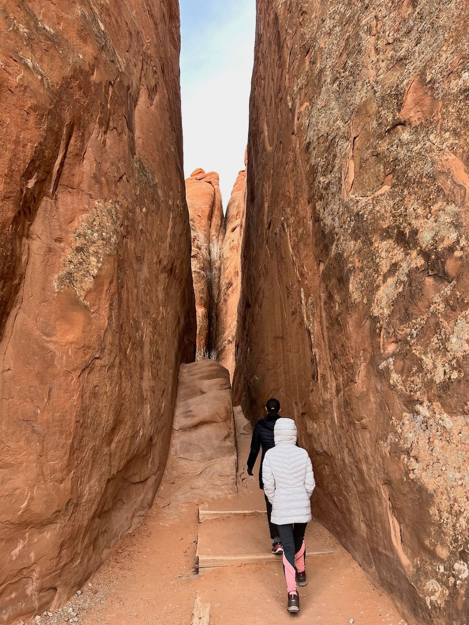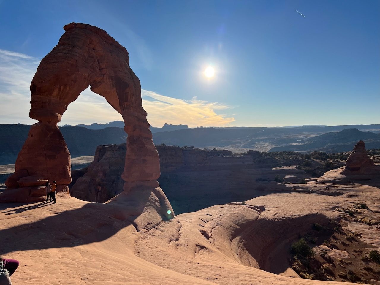 In the afternoon, we prepare for the most popular trail of Arches: the Delicate Arch Trail. Watching the sunset at Delicate Arch should be the most iconic scenery: not only of Arches but also maybe of all the US National Parks. We headed out for it around 3:30 pm for the 5 pm sunset. We expected an hour to get there but made it in 50 minutes. The path was moderately challenging, with steady, rocky uphills. It might be looked dangerous when you see photos of the path - especially steep-looking cliffs. But I never thought it was dangerous. The rock had a good grip, and it was rare to find such a steep slope. But your water bottles could be in danger; we could see several bottles rolling down the cliff - and a brave man got down to the bottom and collected them.