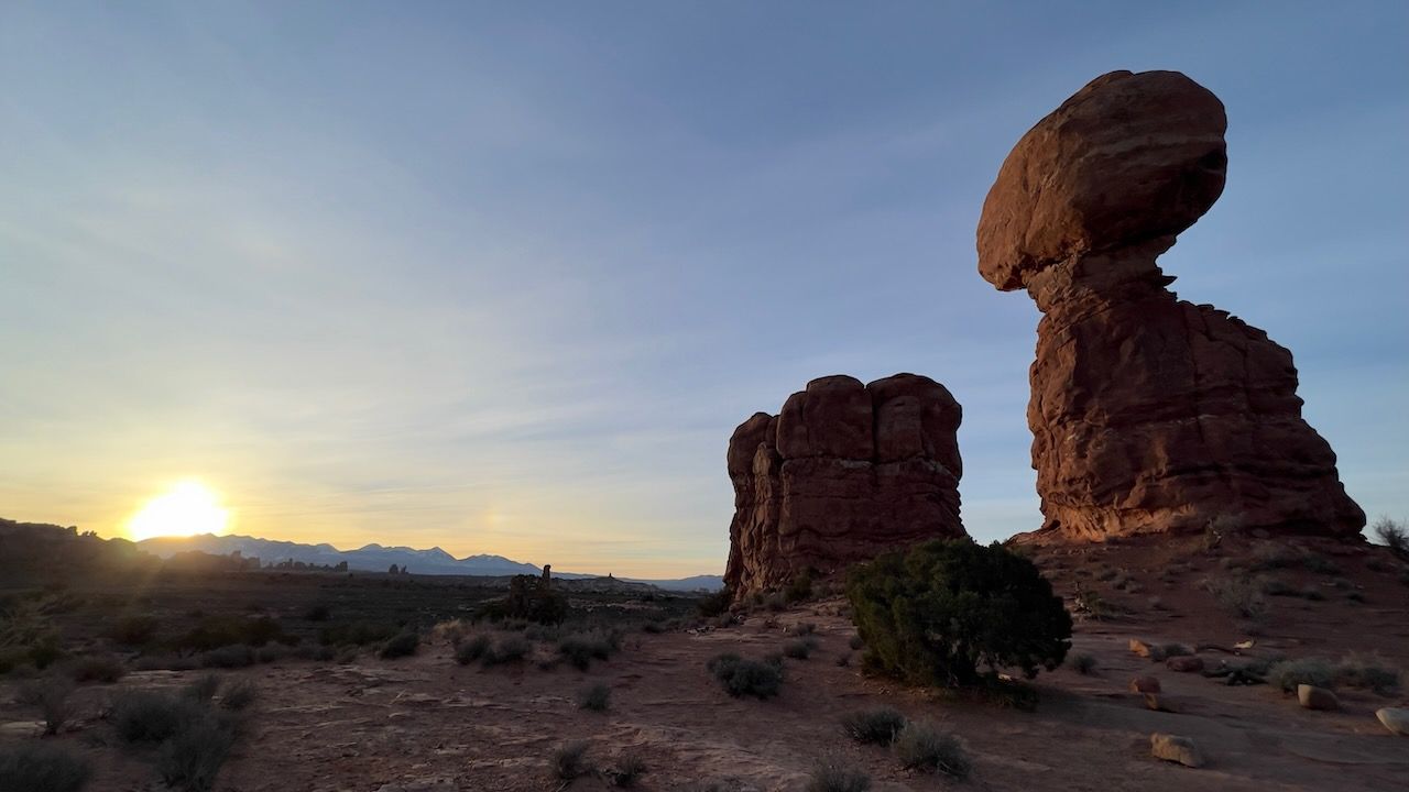 Arches National Park is one of the most popular (so crowded) US National Parks. But parking was not so challenging overall - probably visiting in November (a bit off-season) gave us a breather. But being an early bird always be the correct answer in National Parks. Thanks to that, luckily, we could see the sunrise at Balanced Rock.