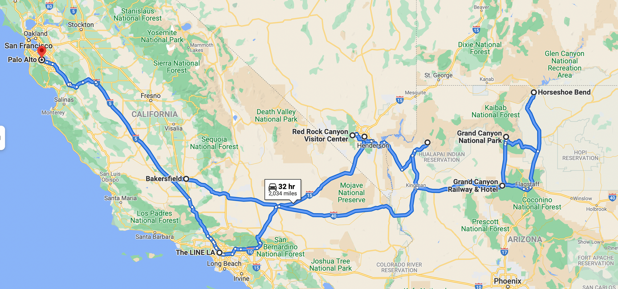 It was a road trip of eight days and 2,058 miles. The main destination was Las Vegas and Grand Canyon. I had usually run a car around 1,000km (621 miles) a year in Korea. So, it was three years' driving for me. My car - Toyota Highlander Hybrid 2021 - was great for the trip. The driving could be challenging unless the Full-Speed Range Dynamic Radar Cruise Control. These days, dynamic or adaptive (the names vary between brands) cruise control is somewhat the default feature in high-end trims. But it really pays off in long-range highway driving - especially when running endless straight and dull roads such as I-5. The 35 mpg helps me not only financially but also with convenience; it gave me 450~480 miles of the cruise distance, and it terminated my anxiety when I planned the next gas stop.