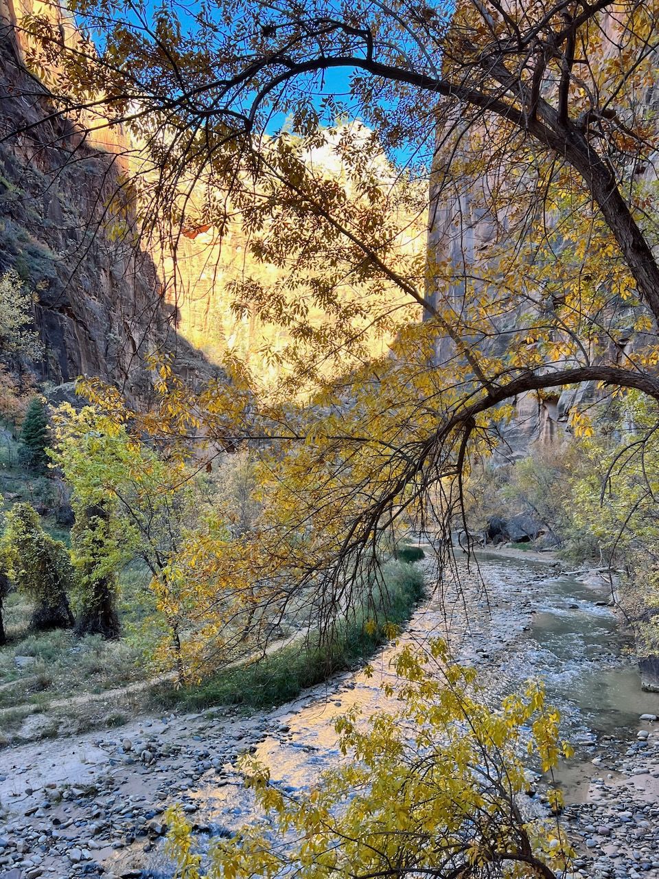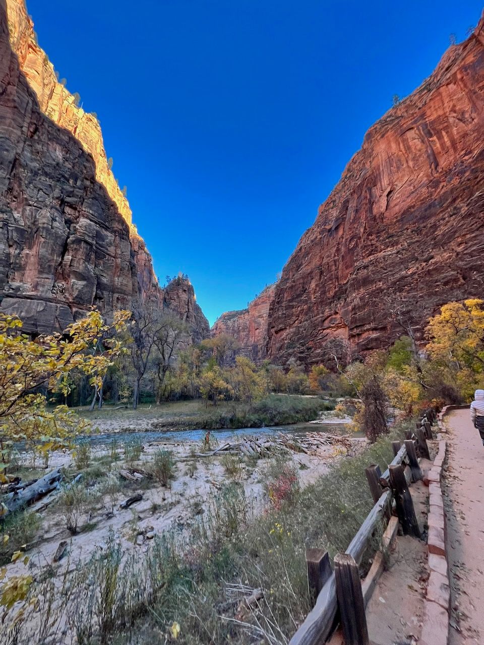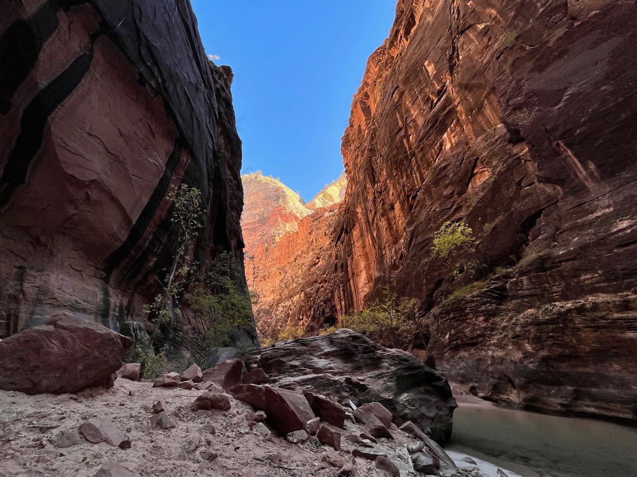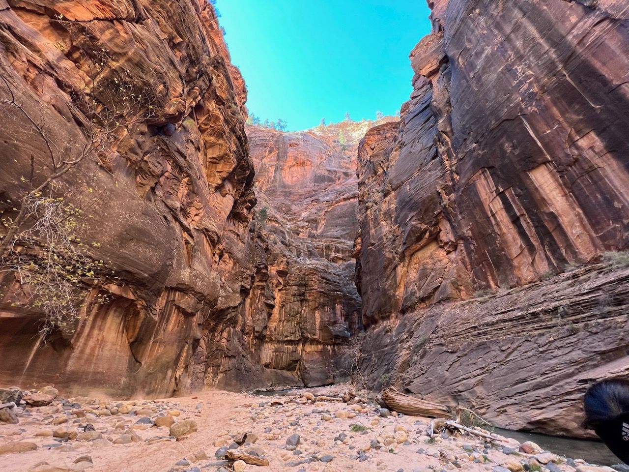 The highlight of the Zion was the Narrows. Walking in the (freezing) water should be the most iconic (we skipped another iconic spot - and infamous for America's most dangerous trail - Angels Landing this time) experience in Zion, but it demanded the right equipment. We rented Dry Pants Packages from Zion Outfitter (also located next to the Park entrance) the evening before our trail. We woke up at 6 am and had breakfast with Curry Noodles - just as we learned from Laid-Back Camp. And we left for the Temple of Sinawava, the last shuttle bus stop. We took the bus around 8:20 am, and it took about 40 minutes. We started the Zion Narrows Riverside Walk trail. The 20-minute walk brought us to the starting point of the Narrows Trail (Bottom-Up). The water was cold but manageable mainly (I think) thanks to neoprene socks. I was surprised that the water came into my feet after a few walks in the water. Still, I realized that it was the water that came through my hydro boots, and it seemed that it didn't pass through the socks because the water was way colder than I felt at my feet; I was surprised again that my feet were dry and soft when I got back to the campsite. The trail was terrific; last year, we had looked down the plunging cliffs of the Grand Canyon, but this year we looked all the way up. My eyes were overwhelmed by surreal sceneries, and my body had an extraordinary experience. We walked up to the entrance of Wall Street: 6 miles and 5 hours in and out. I was proud that my daughter managed it without an issue; last May, it was a little challenging for her to climb up to Nevada Falls. The school PE class must have helped her develop her strength - another good thing about getting out of the Pandemic.